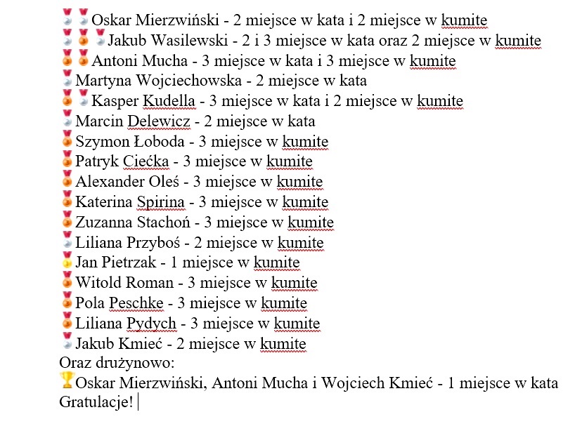 Oto zdobywcy medali reprezentujący BUSHIDO Karate Shotokan:
