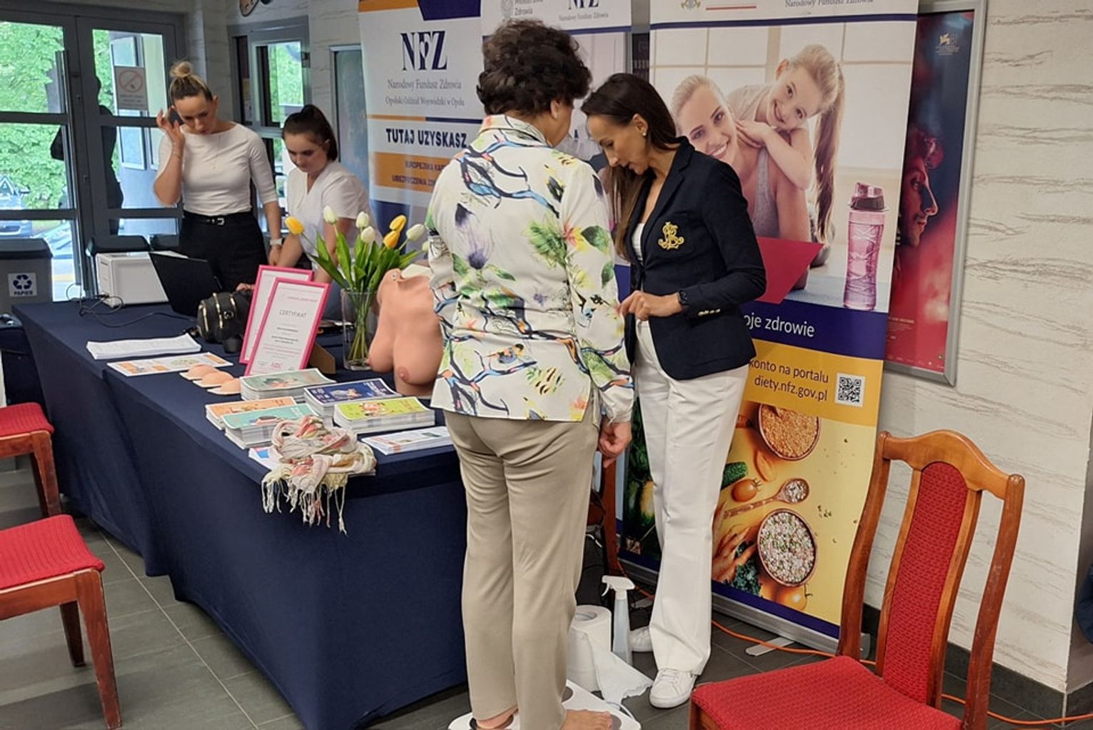 Organizatorzy zapewnili również możliwość analizy składu ciała, dostęp do informacji na temat programów profilaktycznych, a także pomoc w wyrobieniu Europejskiej Karty Ubezpieczenia Zdrowotnego (EKUZ). Spotkanie cieszyło się dużym zainteresowaniem mieszkańców, którzy chętnie korzystali z przygotowanych punktów informacyjnych i diagnostycznych.