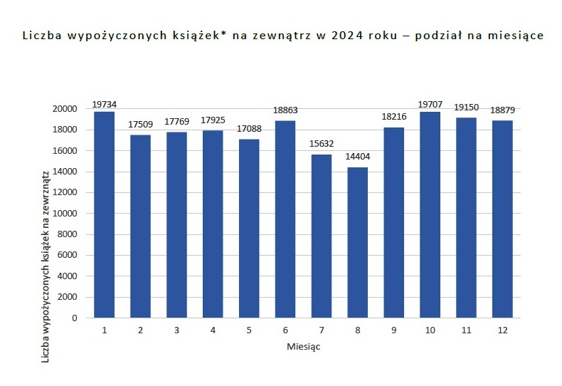 - wypożyczeń na 100 mieszkańców odnotowano 485,12 egzemplarza. W porównaniu z rokiem 2023 daje nam to dodatni wskaźnik o +13,88 egzemplarza.