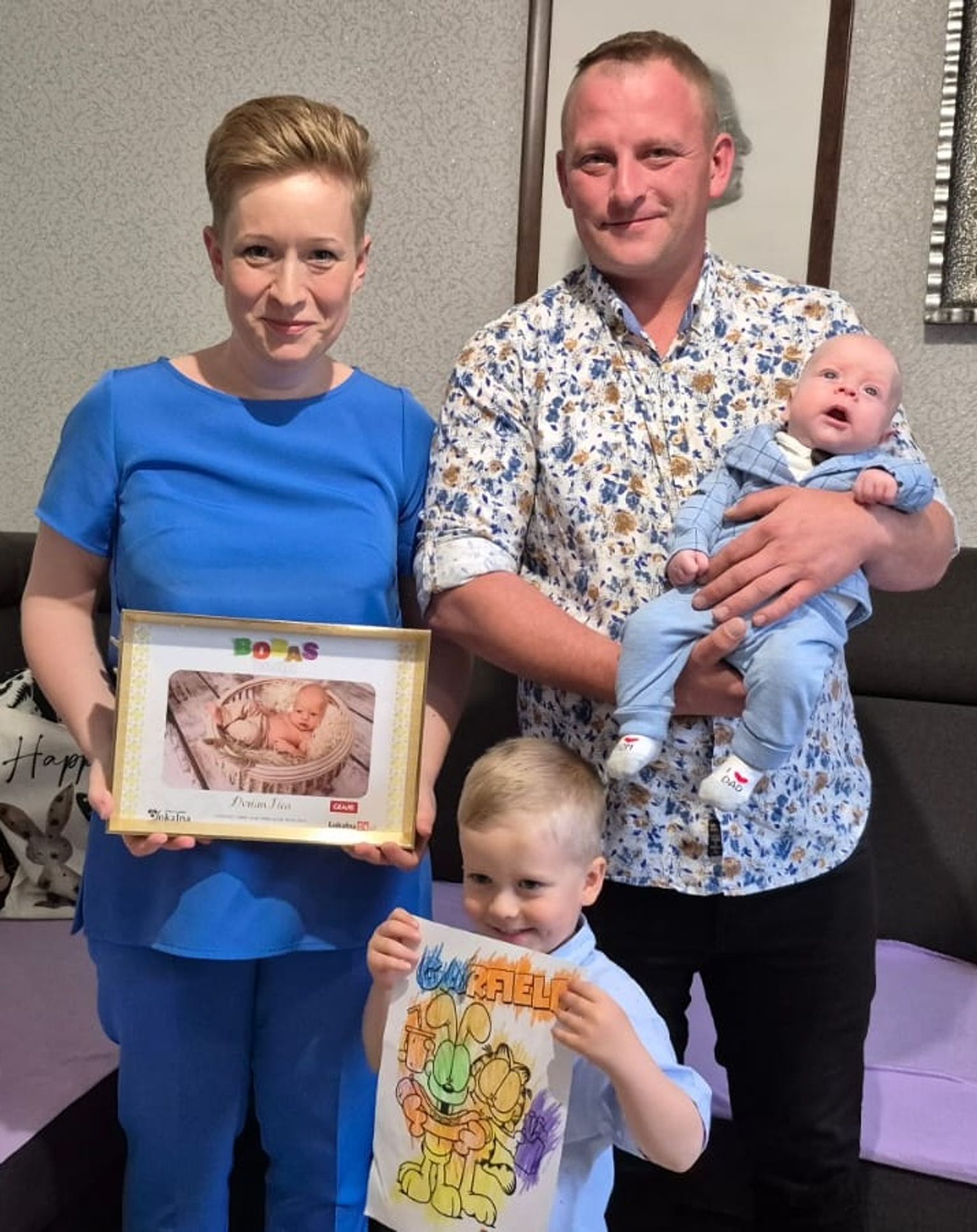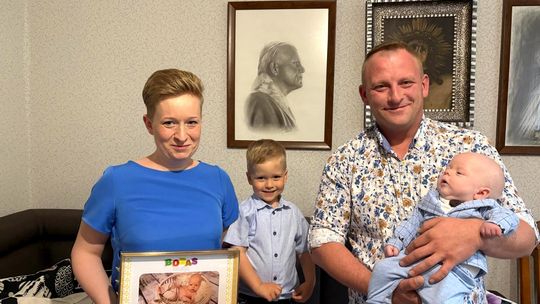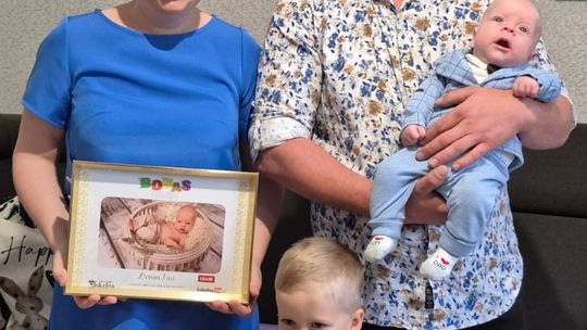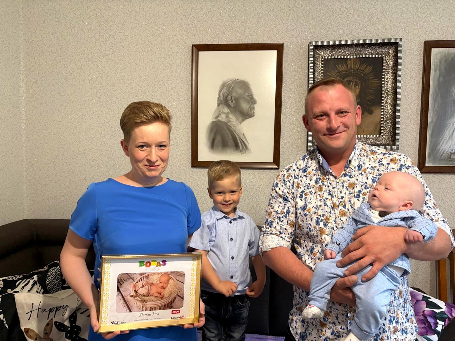 Chłopiec oraz jego rodzice otrzymali nagrody ufundowane przez partnerów konkursu: firmę Eko-Okna SA, fotografa Jarosława Kozłowskiego, sklep z zabawkami Gama Zabawki z Koźla, salę zabaw Nununu, FizjoFemina – Fizjoterapia Uroginekologiczna Justyna Piestrak, zaproszenie do My Silence Pilates Studio, sklep Mały Miś, hotel „Magiczny Zakątek” w Raszowej, agenta PZU Jarosława Kierzkowskiego, firmę Cewe Sp. z o.o. oraz redakcję „Nowej Gazety Lokalnej”. Szczęśliwej rodzinie życzymy dużo zdrowia i radości z wychowywania pociech.