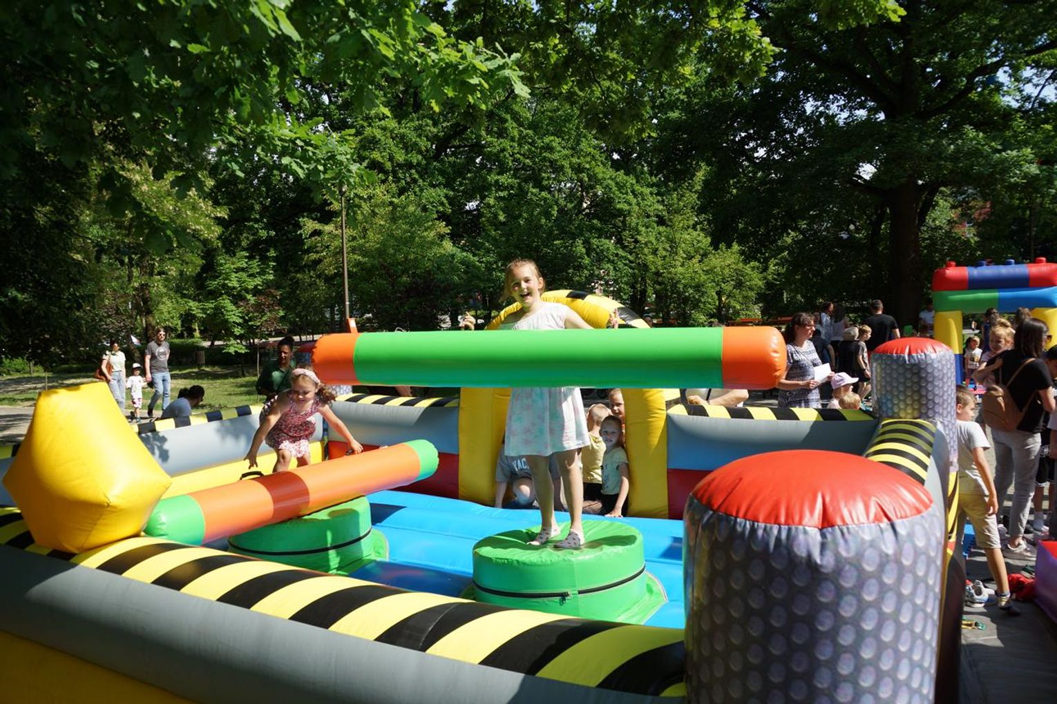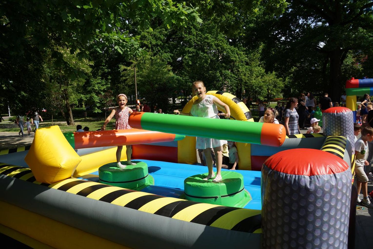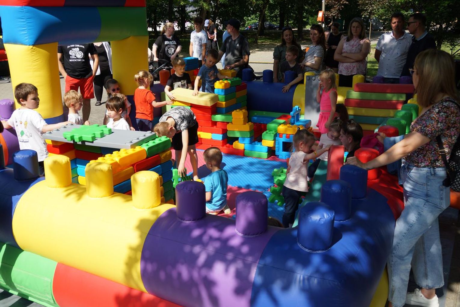 Gorąco, kolorowo i radośnie jest w niedziele popołudnie w parku przy al. Jana Pawła II, gdzie o godz. 14 rozpoczął się piknik z Okazji Dnia Dziecka. Najmłodsi szaleją na dmuchańcach, bawią się gigantycznymi klockami, toczą pojedynki na dmuchanej arenie oraz biorą udział w różnych grach, zabawach i konkursach. Jest też kącik twórczy z grami edukacyjnymi dla maluchów i miejscem do rysowania. Na scenie występują wokaliści Agaty Seidel oraz Studia Piosenki MOK. Są muzyczne pląsy z Anną Jellinek. Można też wygrać różne nagrody na kole fortuny.