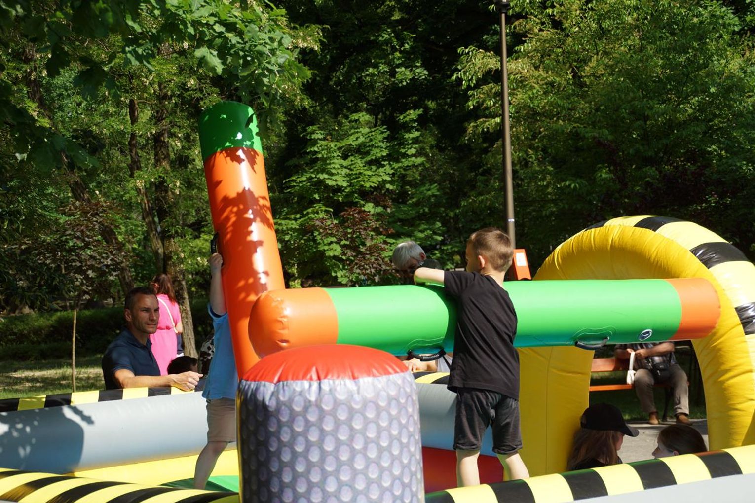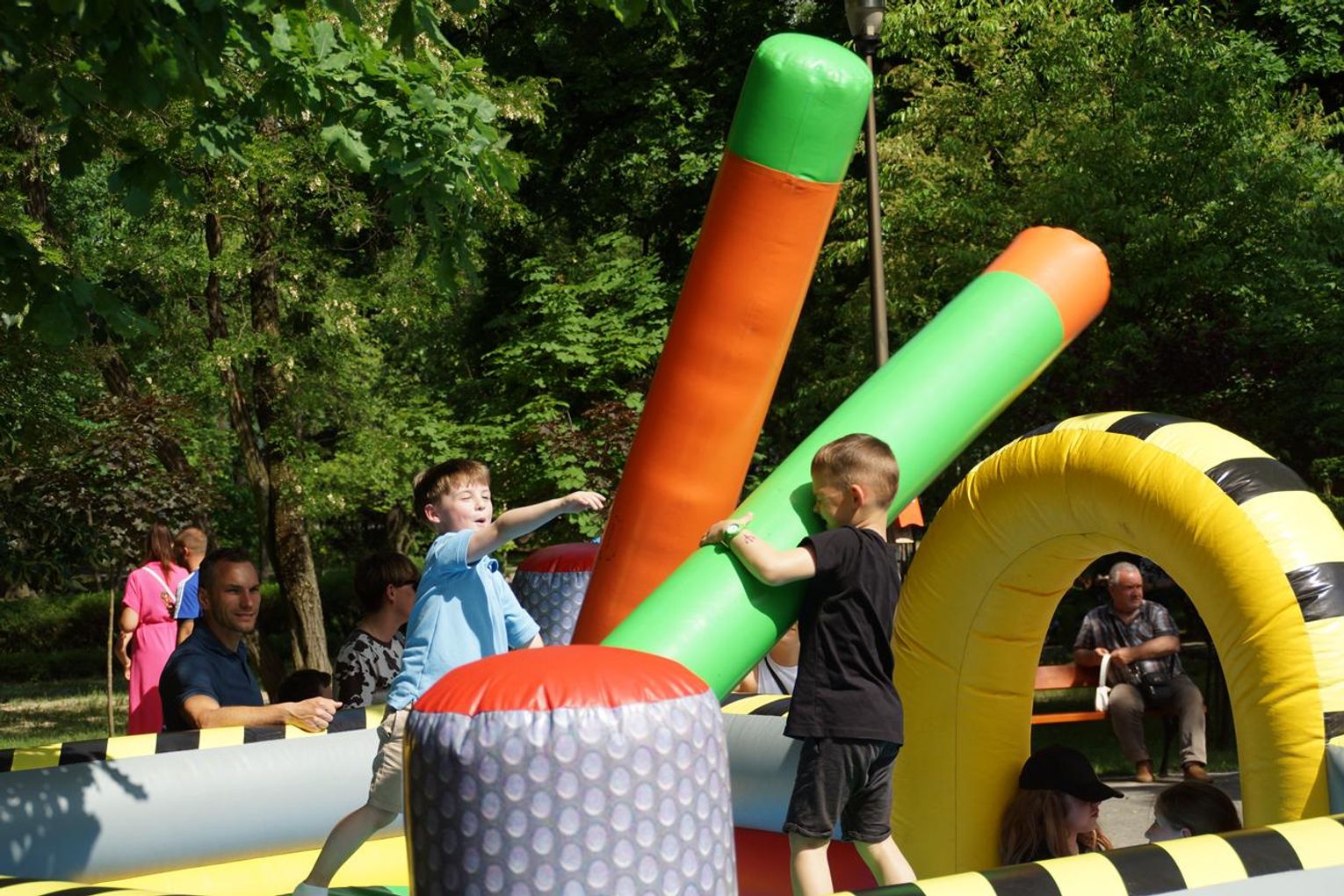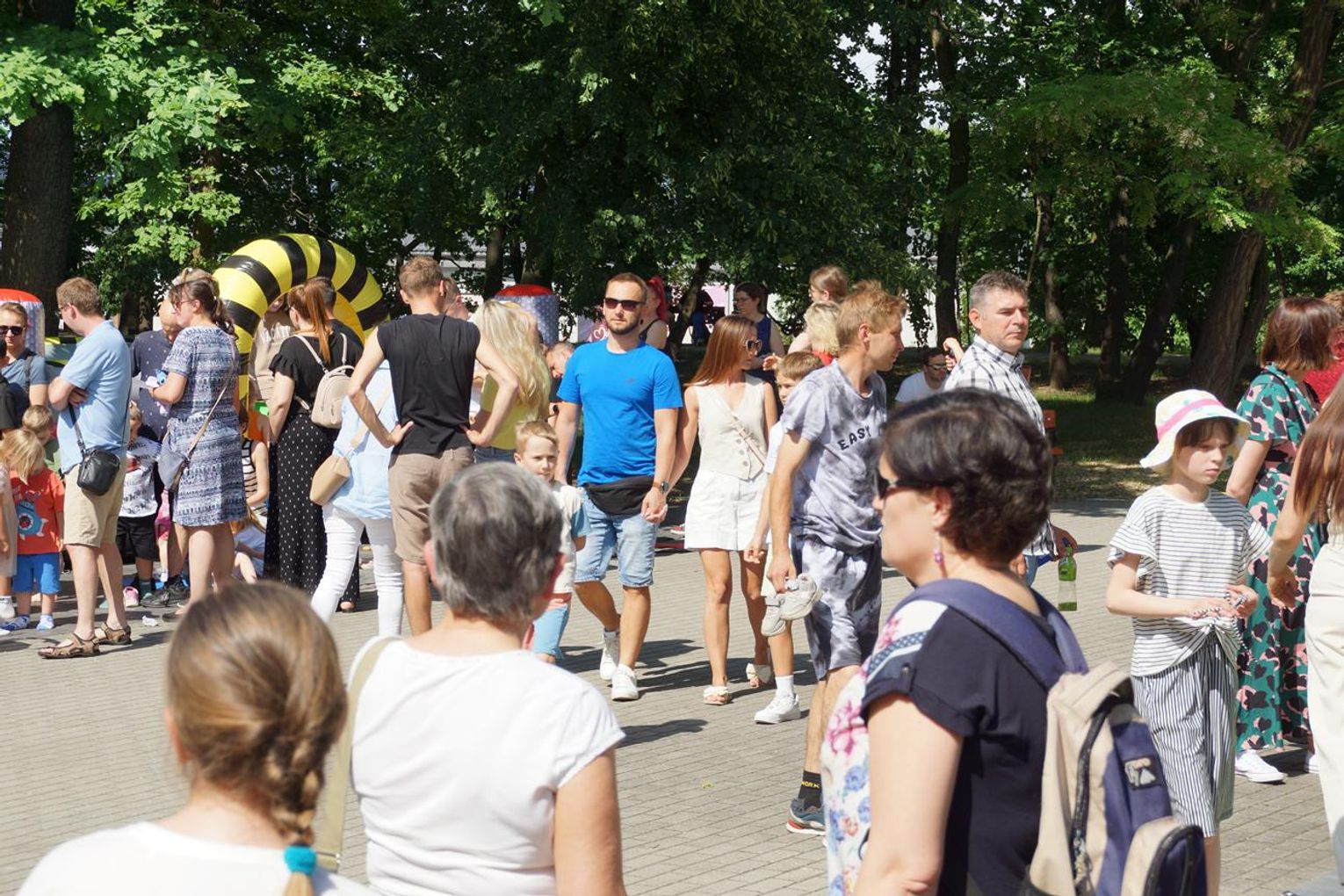 Gorąco, kolorowo i radośnie jest w niedziele popołudnie w parku przy al. Jana Pawła II, gdzie o godz. 14 rozpoczął się piknik z Okazji Dnia Dziecka. Najmłodsi szaleją na dmuchańcach, bawią się gigantycznymi klockami, toczą pojedynki na dmuchanej arenie oraz biorą udział w różnych grach, zabawach i konkursach. Jest też kącik twórczy z grami edukacyjnymi dla maluchów i miejscem do rysowania. Na scenie występują wokaliści Agaty Seidel oraz Studia Piosenki MOK. Są muzyczne pląsy z Anną Jellinek. Można też wygrać różne nagrody na kole fortuny.