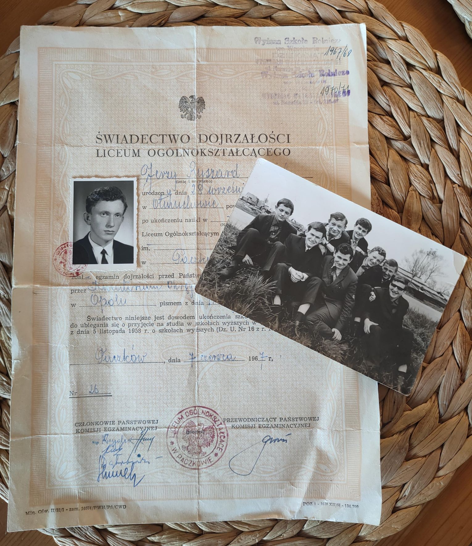 Pani Elżbieta: Kończyłam liceum ogólnokształcące w Gogolinie i miałam marzenie, aby studiować biologię we Wrocławiu. Życie napisało mi trochę inny scenariusz, ale równie ciekawy. Czas matur w 1971 roku pamiętam dokładnie, a szczególnie egzamin z pisemnej matematyki. Mało brakowało, a mielibyśmy problem ze zdaniem matury. Nasz zdolny kolega rozwiązał trudne zadanie i wykorzystał moment, kiedy nasz profesor na jakiś czas opuścił salę egzaminacyjną. Więc tak, przyznaję się, że trochę ściągnęłam. Przed maturą uczyłam się u mojej cioci, gdzie było więcej spokoju. To, co zapamiętam na zawsze – to pięknie przygotowany przez moją Mamę, odświętny stół ze słodkościami i owocami, który czekał na mnie po powrocie z egzaminu. Do dziś mnie to wzrusza, bo na co dzień żyliśmy raczej skromnie.