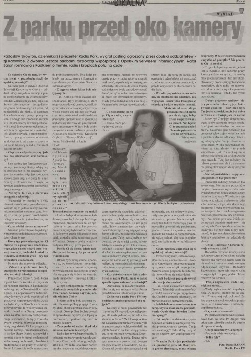 - Koledzy w radiu powiedzieli mi: “życzymy Ci wszystkiego najlepszego, ale może jednak się nie uda i zostaniesz w Parku”. W telewizji, w której już znalazłem bardzo wielu miłych i sympatycznych ludzi, stwierdzili, że jeżeli dostałem się tam drogą castingu, to już mnie nie wypuszczą. Decyzja więc należy do mnie. Trudno mi w tym momencie powiedzieć. Jestem między młotem a kowadłem, bo zarówno żal byłoby nie skorzystać z tej szansy, jaka się teraz pojawiła, ale ogromnie trudno byłoby mi się rozstać - zarówno ze współpracownikami, a przede wszystkim ze słuchaczami radia Park.