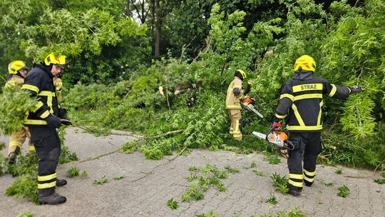 Najwięcej pracy strażacy mieli w Koźlu gdzie przy ulicy Gazowej i 24 Kwietnia usuwano skutki połamanych drzew. W drugi przypadku na czas usunięcia gałęzi wprowadzono ruch wahadłowy. Trzecia interwencja w mieście związana z usuwaniem połamanych gałęzi, miała miejsce przy ulicy Niezapominajek. Do powalonego drzewa w Polskiej Cerekwi zadysponowano dwie jednostki straży pożarnej: OSP Polska Cerekiew i OSP Wronin. Z kolei w Ucieszkowie (gmina Pawłowiczki) strażacy interweniowali z powodu uszkodzonego dachu jednej z posesji.
