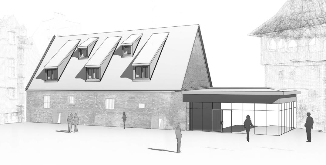 Zespół przewiduje też wprowadzenie oszklenia w połaci dachowej lamusa, a także zaprojektowanie antresoli z możliwością eksploatacji tej przestrzeni. Padła również propozycja, aby zasłonić widoczną wewnątrz - mało estetyczną - ścianę kamienicy i zaprojektować ścianę oddzielającą lamus od budynku. Należy też zamurować niewielkie wejście do lamusa, prowadzące od strony kamienicy.