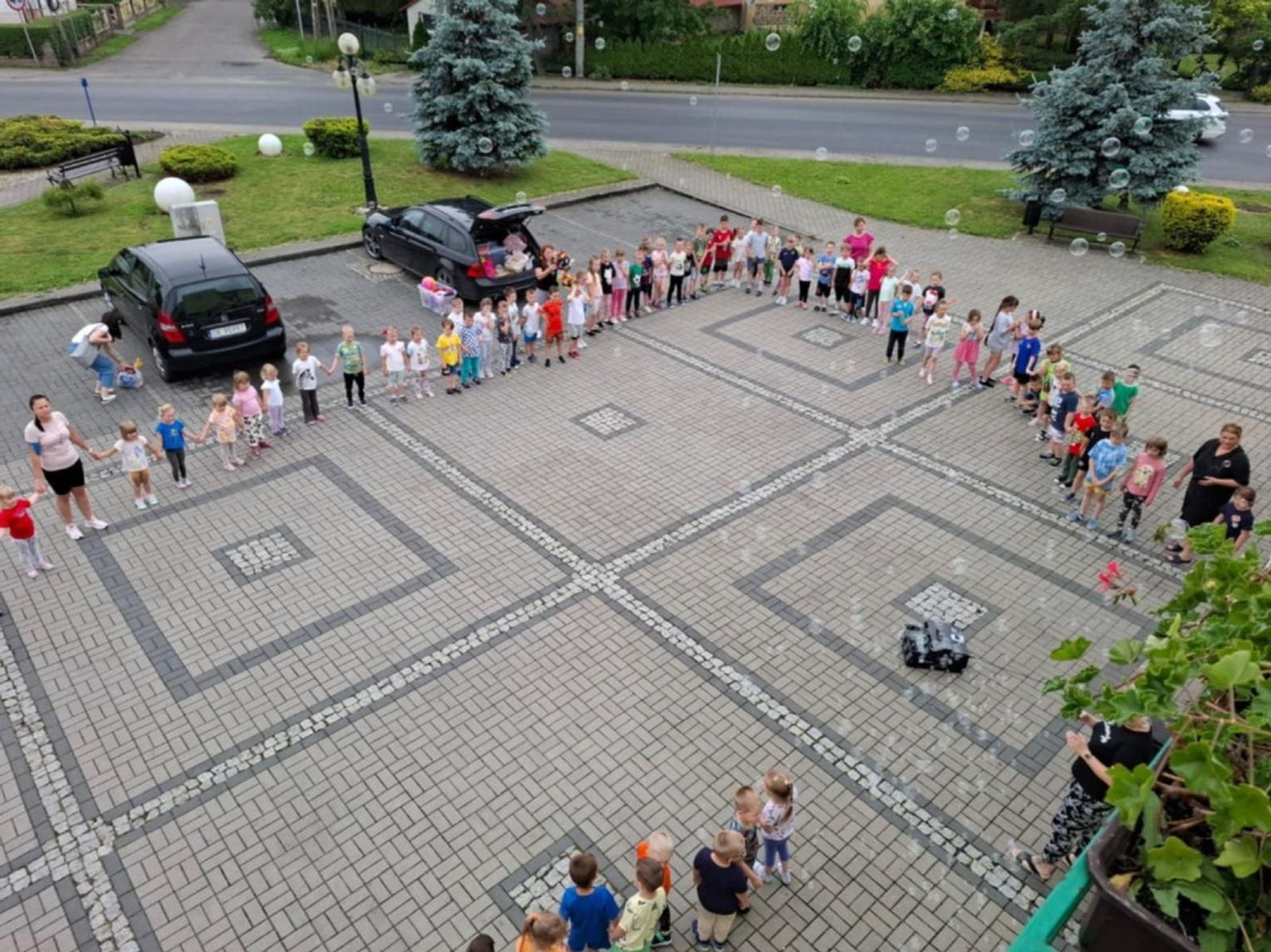 Niespodzianki nie kończyły się jednak na tym - przed budynkiem GOK-u zorganizowano pokaz baniek mydlanych. Każdy uczestnik otrzymał również drobny prezent - kolorowy wiatraczek i słodki upominek.