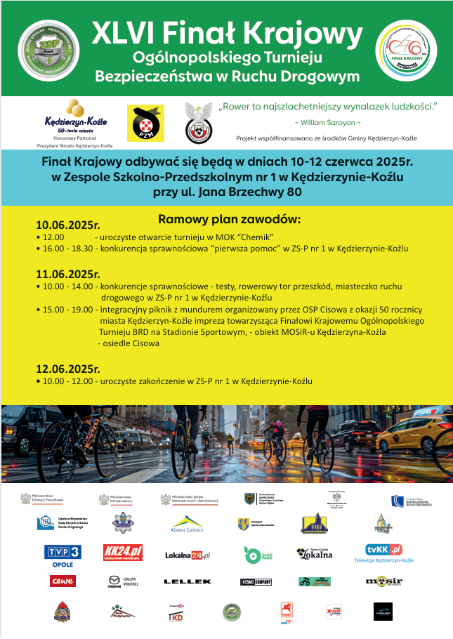 Przed nami trzy dni pełne emocji, rywalizacji i dobrej zabawy! Uczestnicy z całej Polski zmierzą się w konkurencjach sprawdzających wiedzę i umiejętności z zakresu ruchu drogowego, udzielania pierwszej pomocy oraz sprawności na rowerowym torze przeszkód
