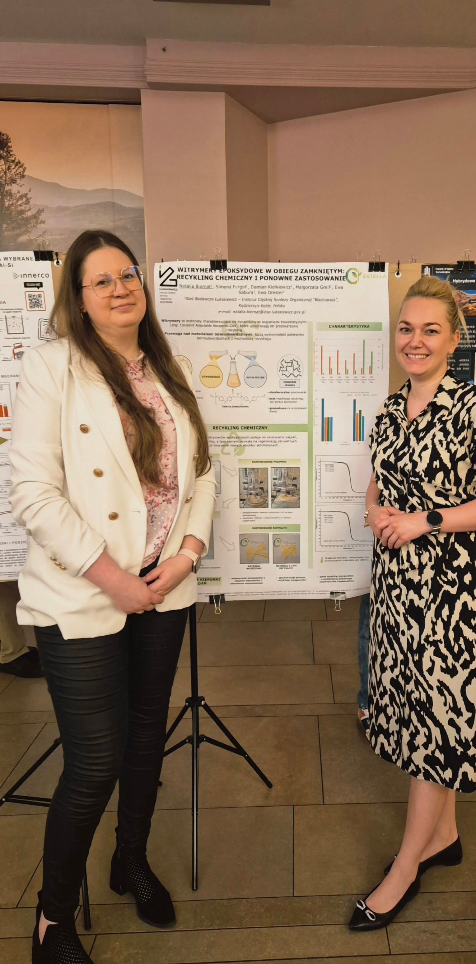 Było to wartościowe doświadczenie dla naszych badaczek, które miały okazję zaprezentować wyniki prowadzonych badań podczas sesji referatowej: Natalia Biernat, Simona Furgoł, Małgorzata Greif, Konrad Szustakiewicz, Ewa Sabura, Ewa Dresler „Modyfikacja poliolefin w kierunku struktur witrymerowych: synteza, właściwości i potencjał aplikacyjny”.