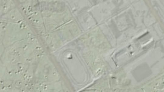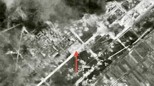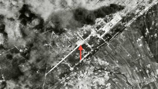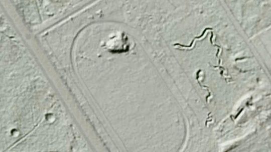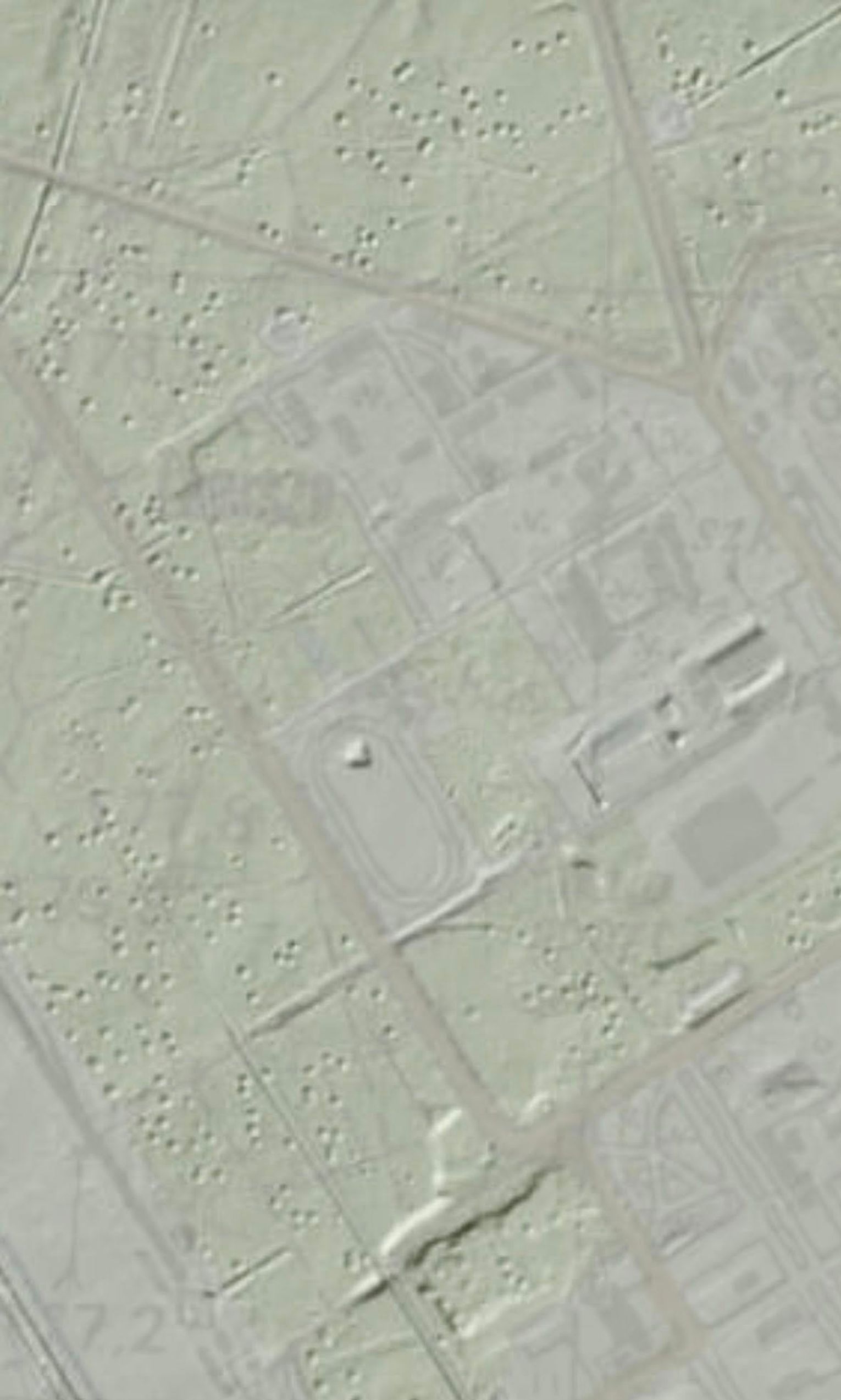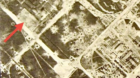 Obiekt jest doskonale widoczny na amerykańskich zdjęciach lotniczych z 1944 roku i ma na nich kształt prostokąta. Prawdopodobnie był wykorzystywany również po wojnie i właśnie w tamtym czasie mógł przybrać bardziej obłe kształty, które świetnie widać w Geoportalu w systemie Lidar.