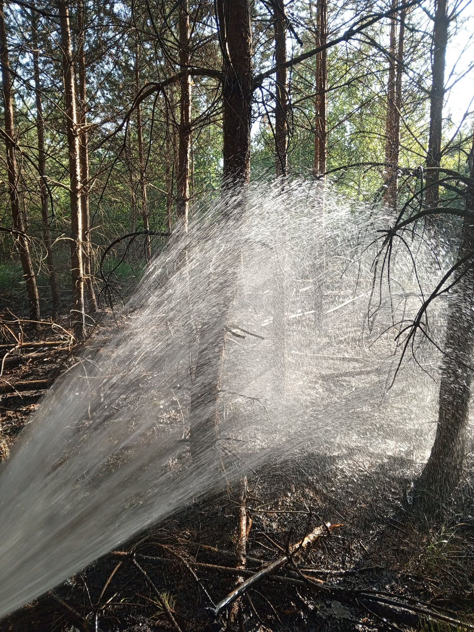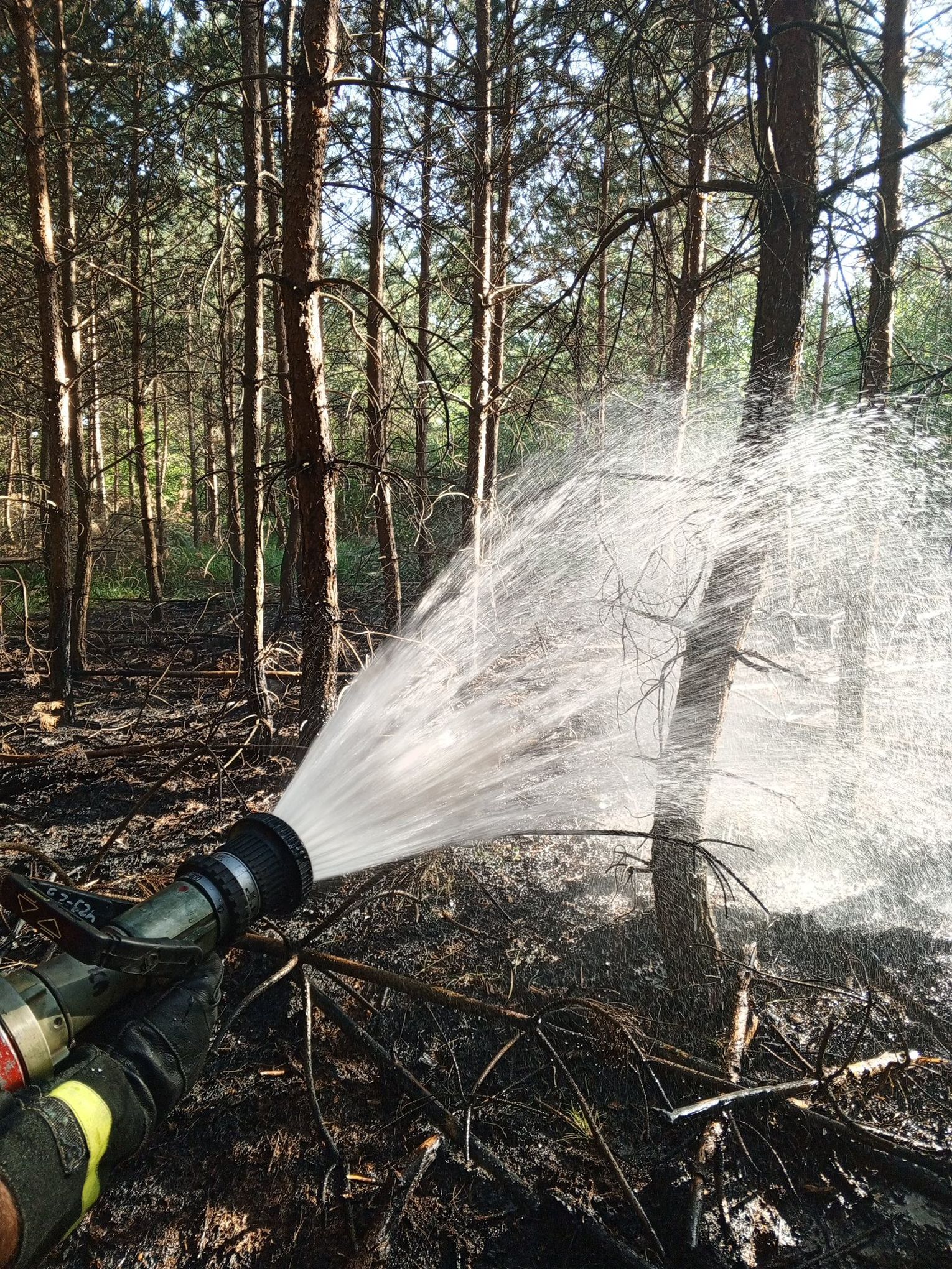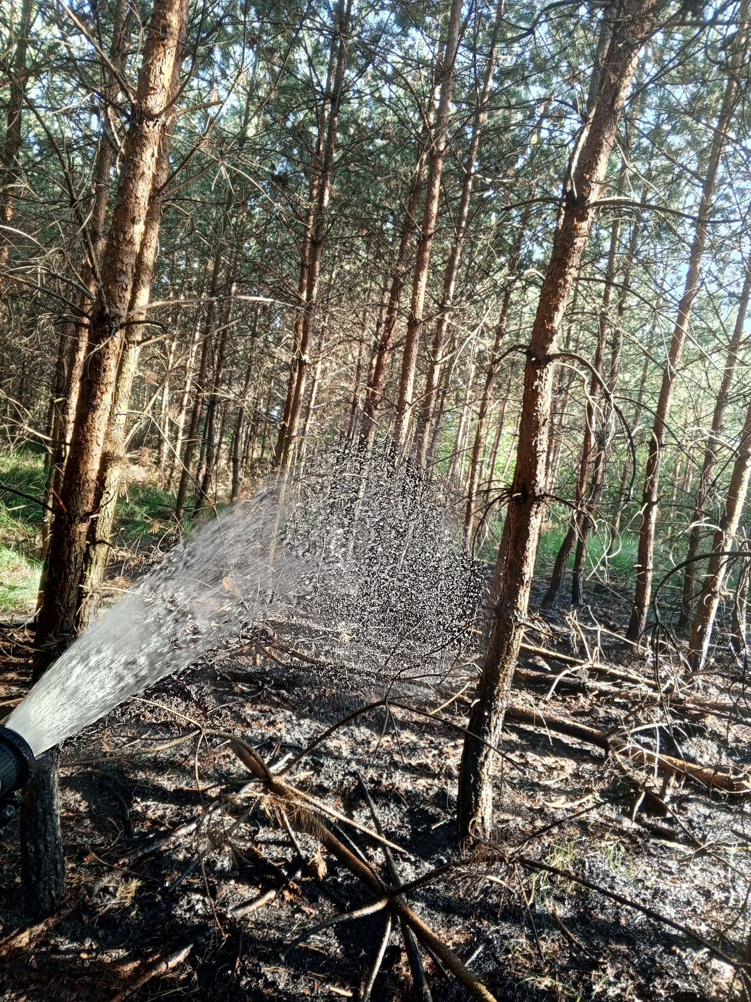 W akcji uczestniczyły zastępy: 422-21, 422-25, 422-26 oraz 429-25. Strażacy podali prądy wody w natarciu, dogaszali zarzewia ognia i schładzali glebę, aby zapobiec ponownemu zapłonowi. Działania prowadzono z pełnym zaangażowaniem i profesjonalizmem.