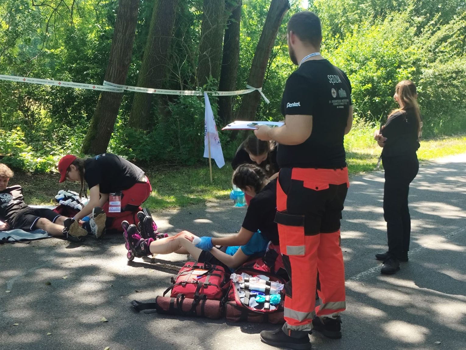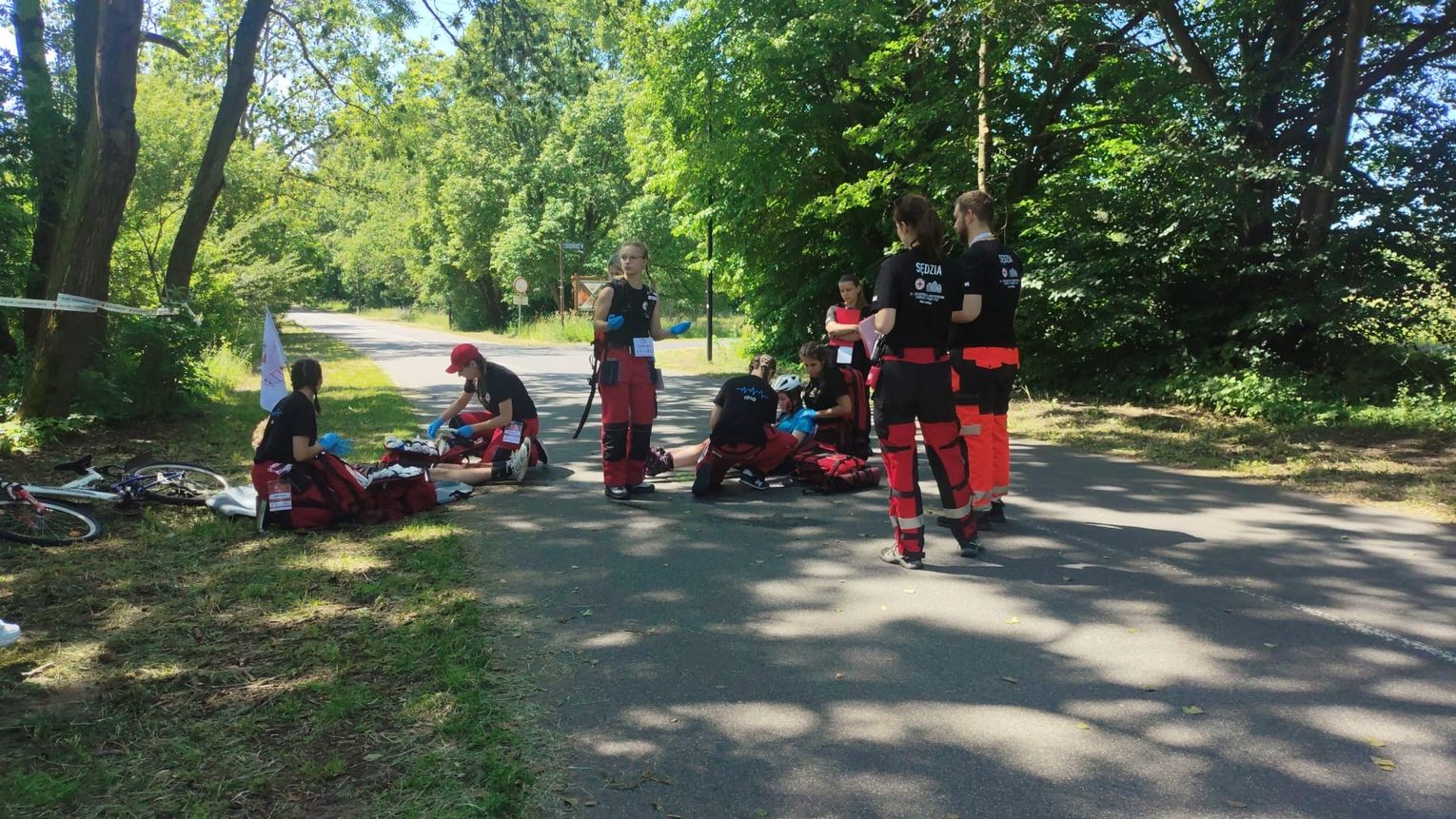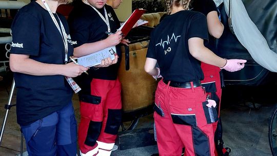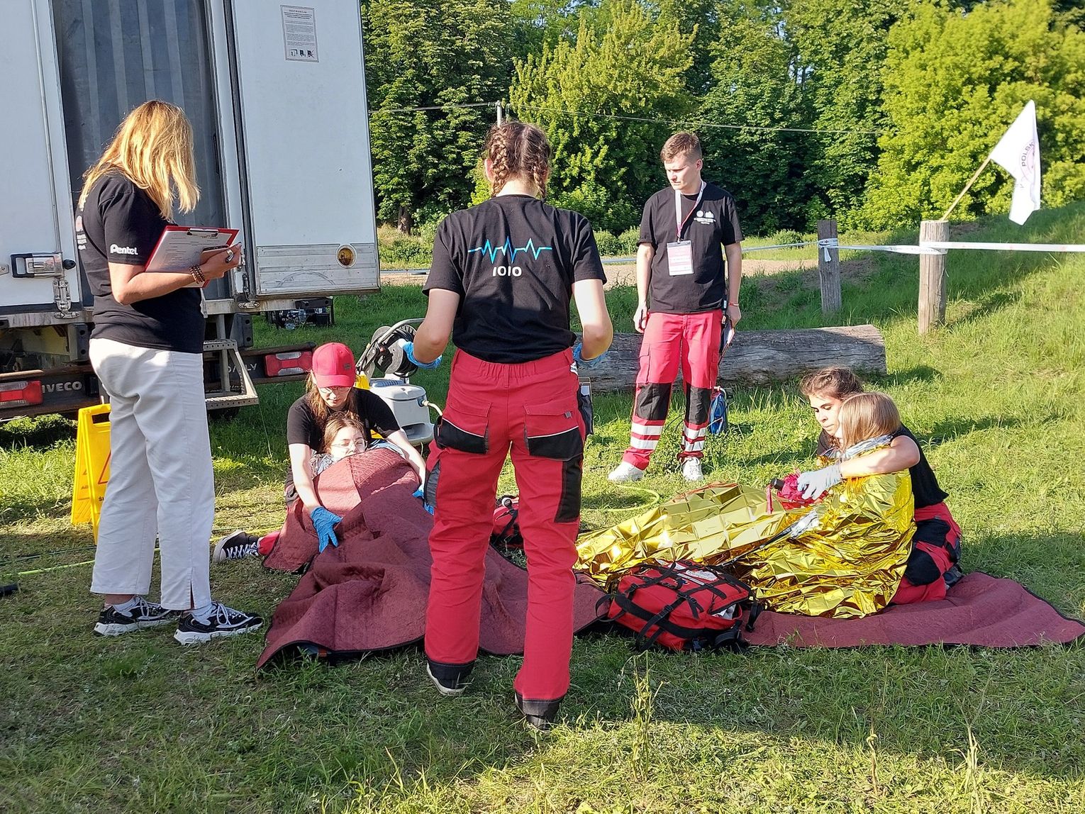 Drużyna w składzie: Jagoda Żyłowska (3B), Magda Samson (3C), Zuza Szkleniarz (3D), Julia Nowak (2B) i Stella Catovic (1A) zmierzyła się z 14-kilometrową trasą, upałem sięgającym 27°C oraz 12 stacjami z realistycznie przygotowanymi pozoracjami medycznymi. Organizatorzy nie oszczędzali uczestników – scenariusze obejmowały urazy mechaniczne, chemiczne, złamania otwarte, wytrzewienia, porażenia prądem, udary, krwotoki, a także elementy psychologiczne, takie jak kontakt z ofiarami hejtu czy świadkami traumatycznych wydarzeń. Wprowadzono też nowość – dyspozytornię, w której zawodnicy musieli samodzielnie wzywać służby ratunkowe i przekazywać im niezbędne informacje.