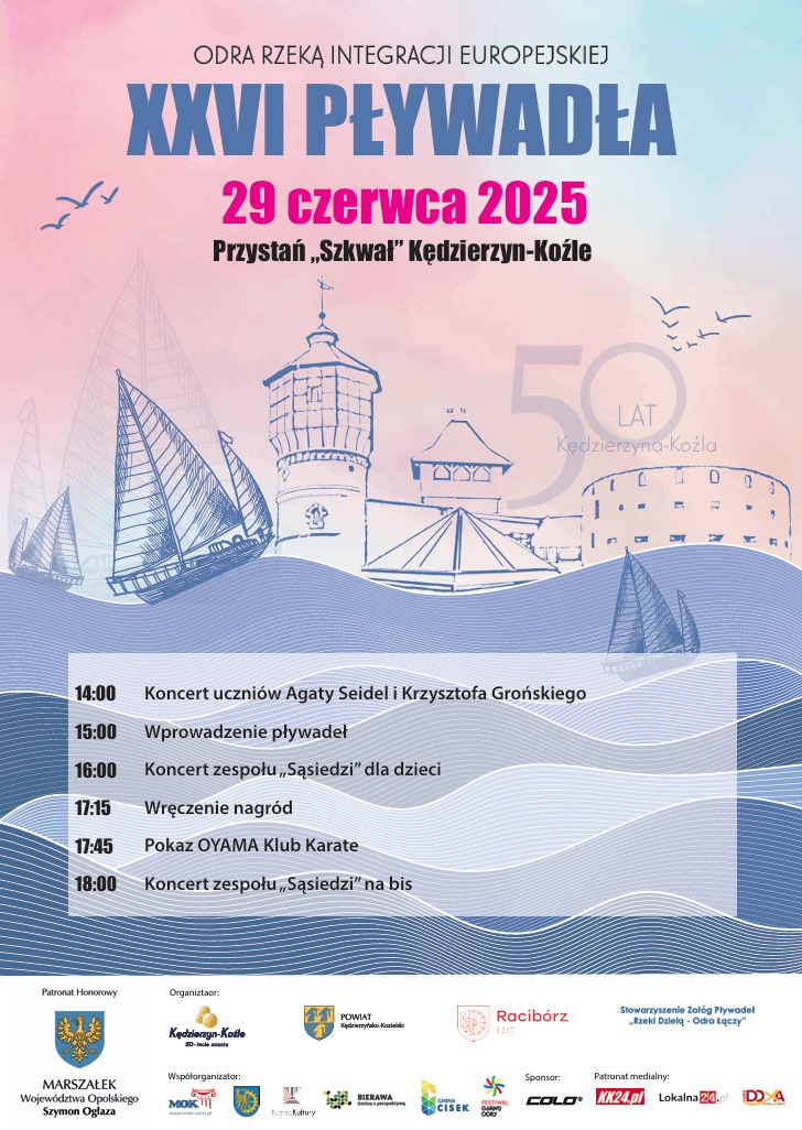 Na scenie wystąpią uczniowie Krzysztofa Grońskiego i Agaty Seidel, energetyczny zespół "Sąsiedzi", a największą atrakcją będzie barwna parada „pływadeł” pod tegorocznym hasłem: „Viadrus i Chrobry strażnikami naszej Odry”.