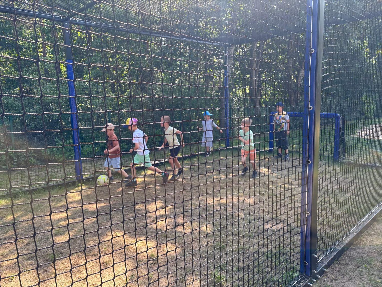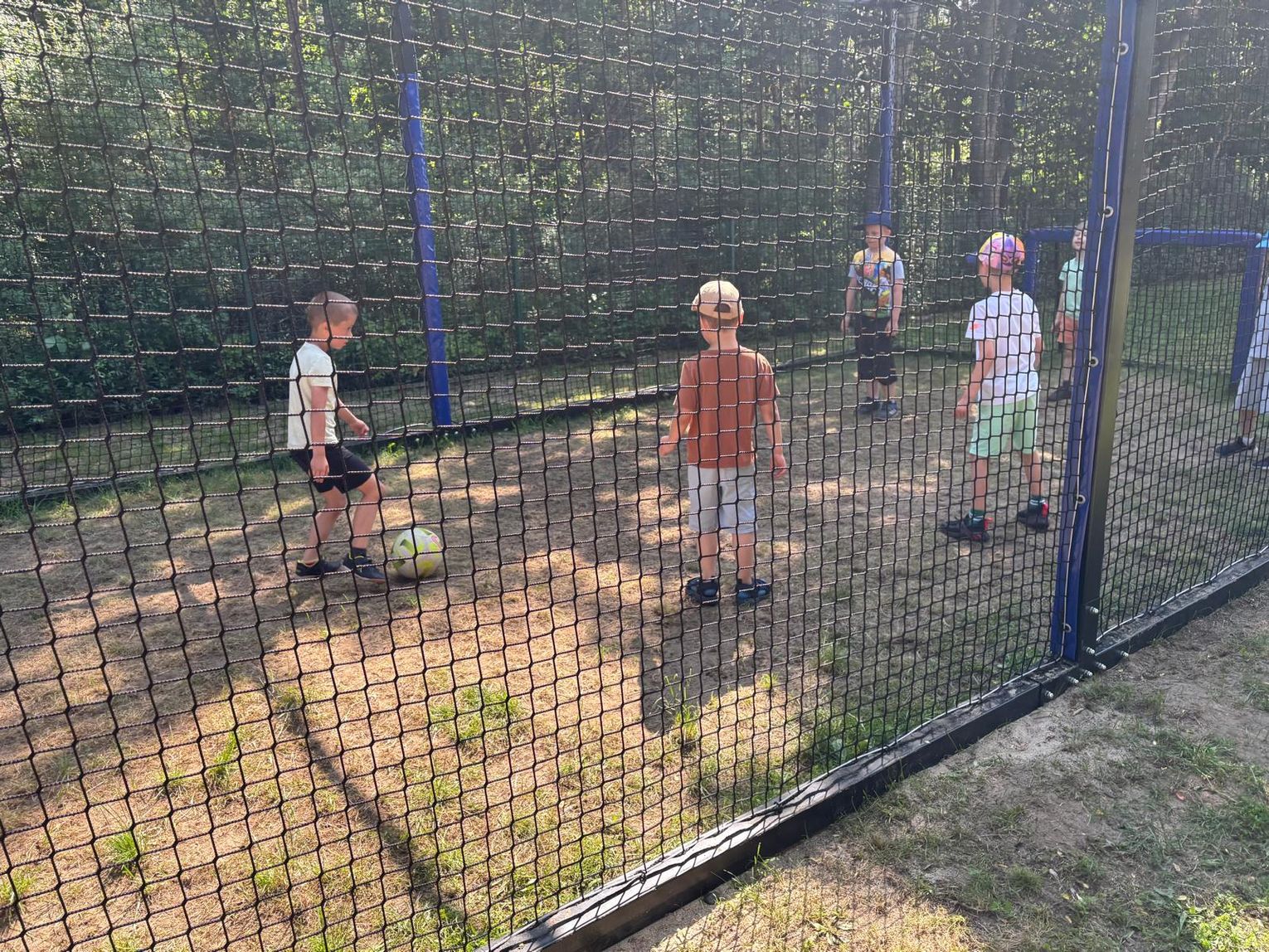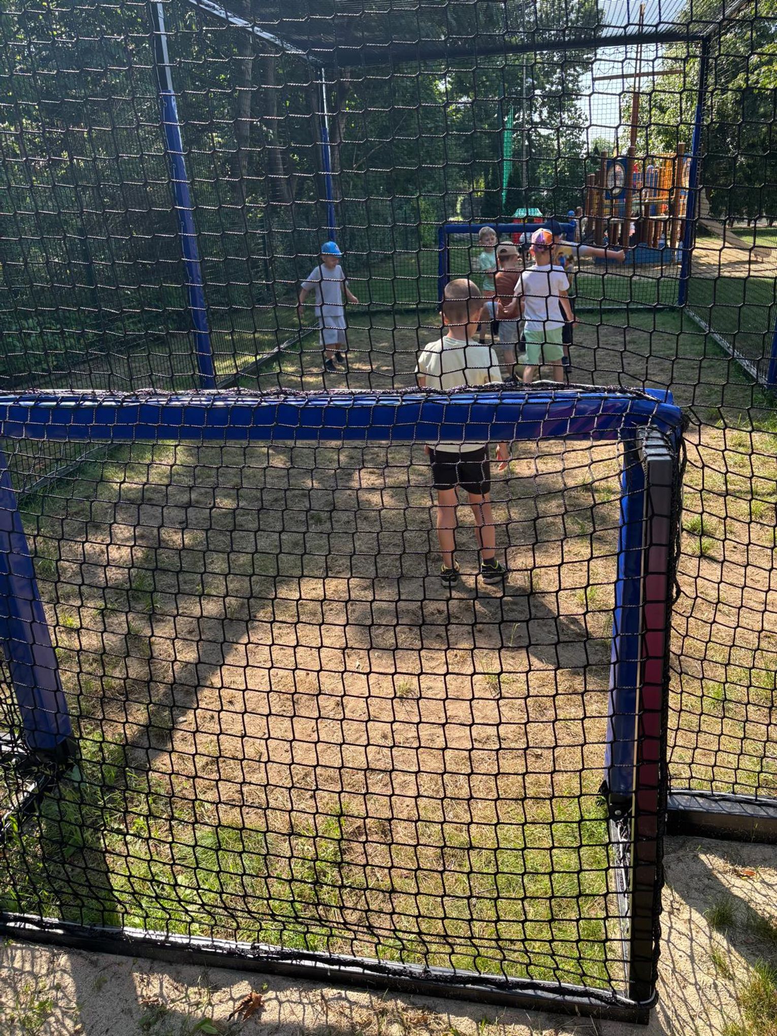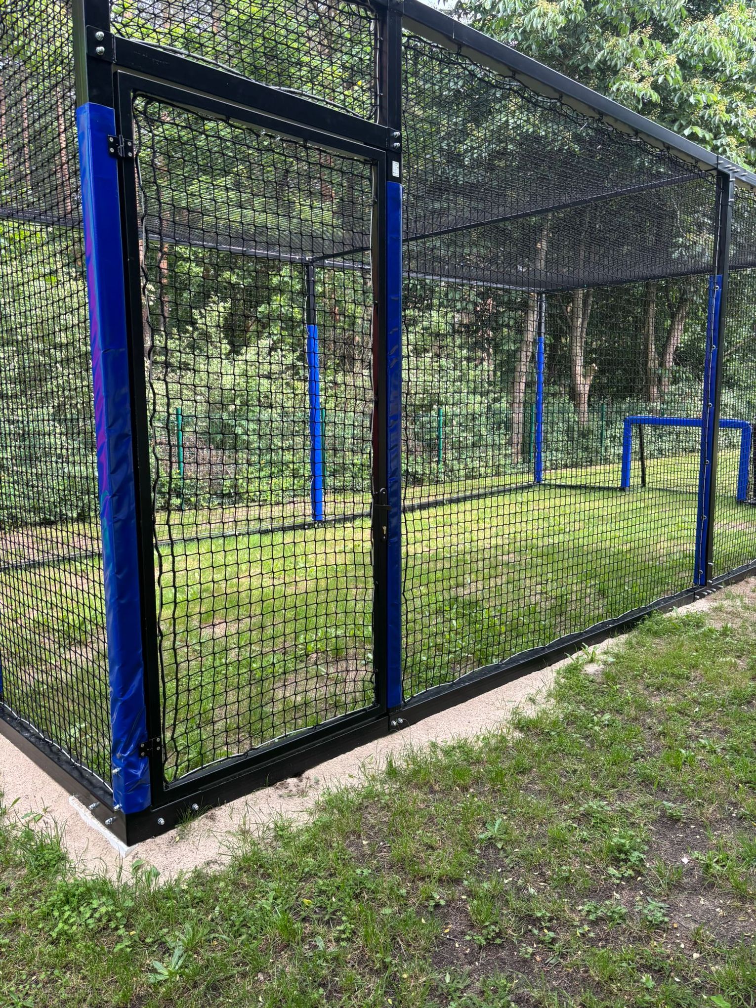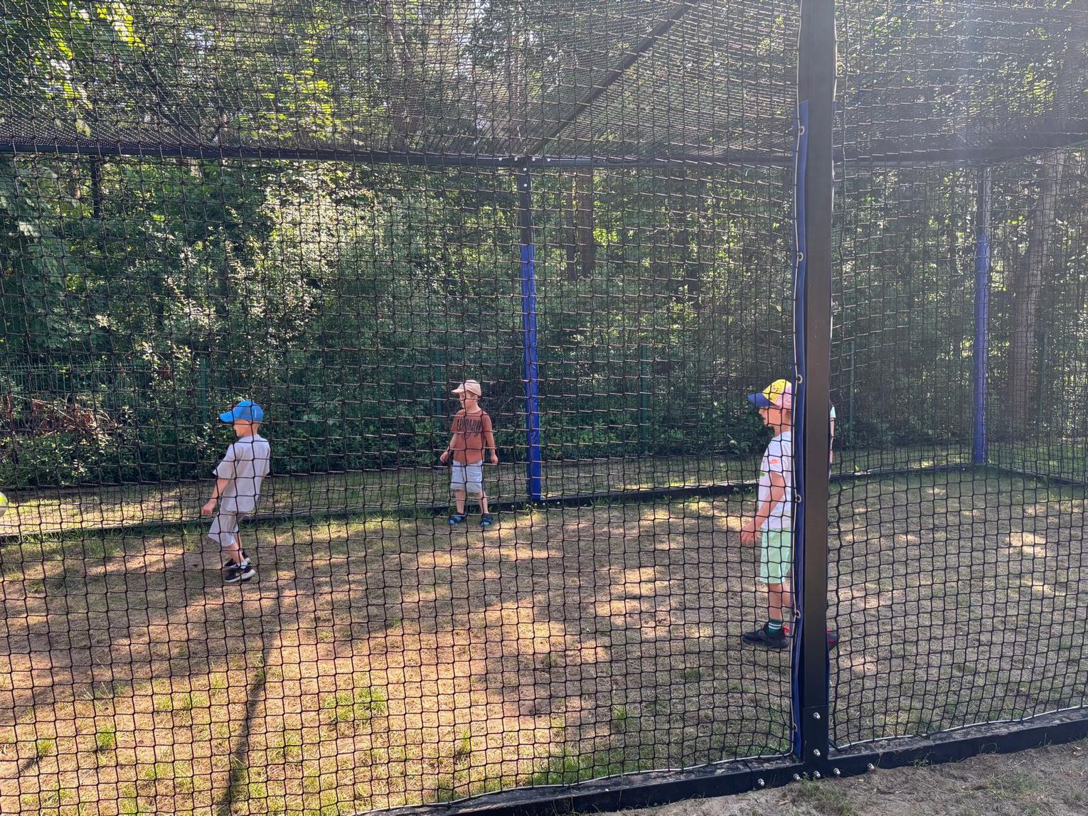 Dostosowany do wzrostu dzieci obiekt treningowy w całości ogrodzony jest siatką i wyłożony miękkimi materiałami.