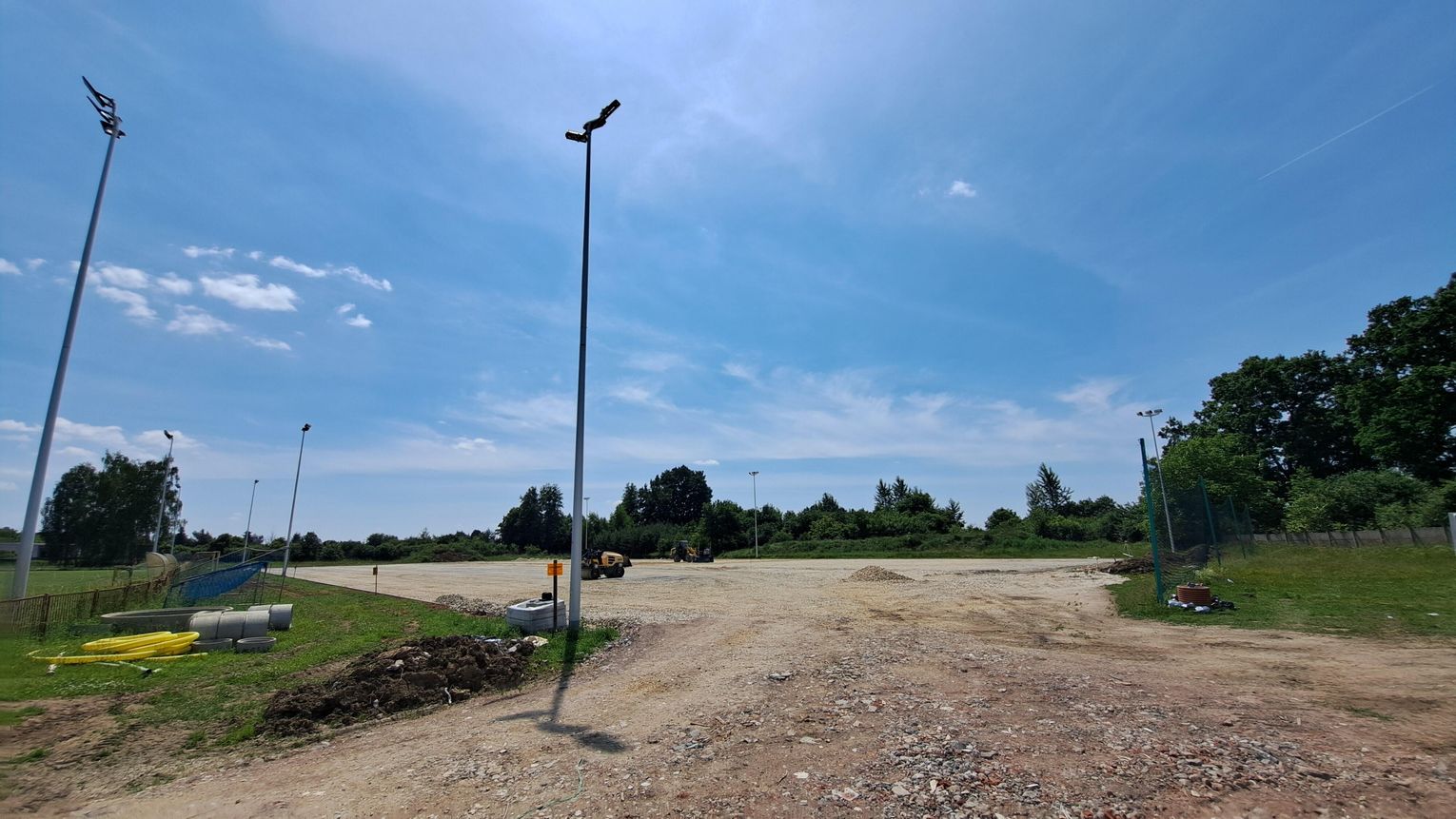 W ramach tej inwestycji przewidziano m.in. prace rozbiórkowe i przygotowawcze; demontaż obu bramek wraz z fundamentowaniem; zebranie warstwy humusu do głębokości projektowanych warstw nawierzchni syntetycznej oraz pod drenaż wraz ze studnią chłonną.