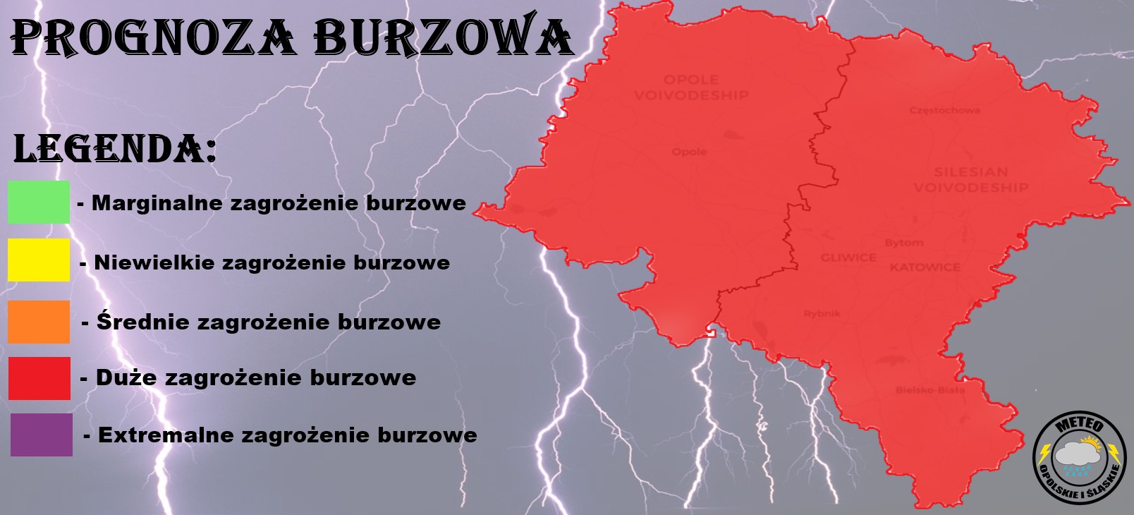 Wiatr może być niszczycielski, podobnie jak duży grad. Największym zagrożeniem będą bardzo intensywne opady deszczu, dużego gradu o średnicy do 5 cm. Mocno może również wiać, ponieważ porywy wiatru mogą osiągać 100-130 km/h. Ostrzeżenie obowiązuje od 23.06.2025 (godz. 8.00) do 24.06.2025 (godz. 8.00).