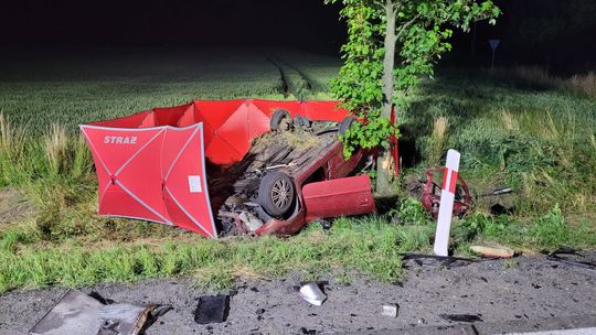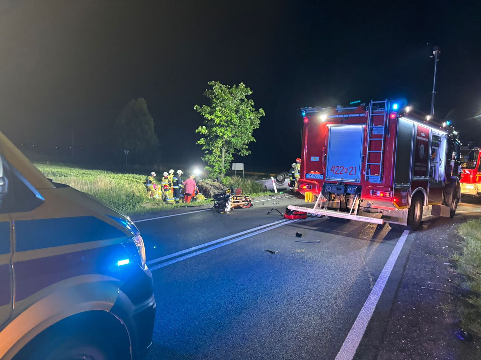 Do pierwszego wypadku doszło w piątek o godzinie 22:30, na skrzyżowaniu prowadzącym w kierunku Karchowa. Kierujący volkswagenem 49-letni mieszkaniec Kędzierzyna-Koźla, jadąc od strony Gościęcina, nie ustąpił pierwszeństwa 21-letniemu kierowcy Peugeota, doprowadzając do zderzenia. Oba samochody wyleciały poza jezdnię, przewracając się na dachy. Peugeotem podróżowało czterech mężczyzn, Volkswagenem jedynie kierowca. Trzech uczestników zdołało opuścić pojazdy o własnych siłach, natomiast dwie osoby zostały ewakuowane przez świadków, którzy natychmiast rozpoczęli resuscytację krążeniowo-oddechową. Pomimo szybkiej pomocy i działań ratowniczych, 18-letni pasażer Peugeota zginął na miejscu. Sprawca nie odniósł obrażeń. Obaj kierowcy byli trzeźwi. Do zdarzenia skierowano pięć zastępów straży pożarnej, cztery zespoły ZRM, trzy patrole policji, prokurator oraz technicy policyjni.