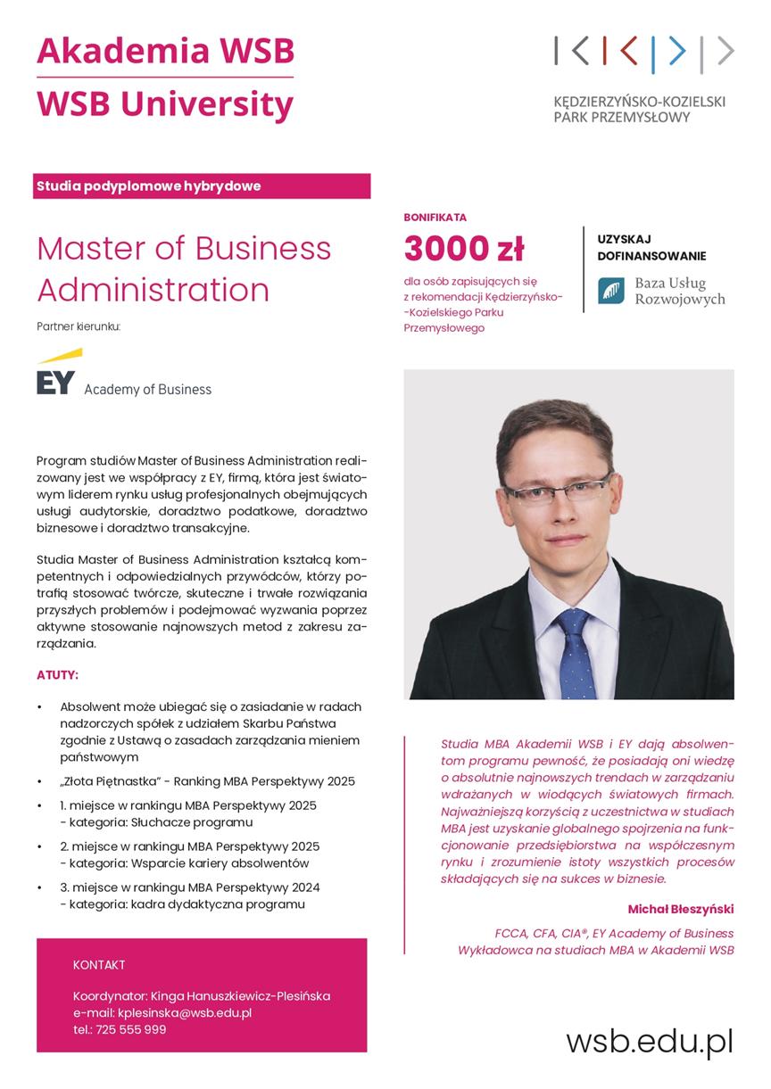Nazwa kierunku: Master of Business Administration (partner: EY)