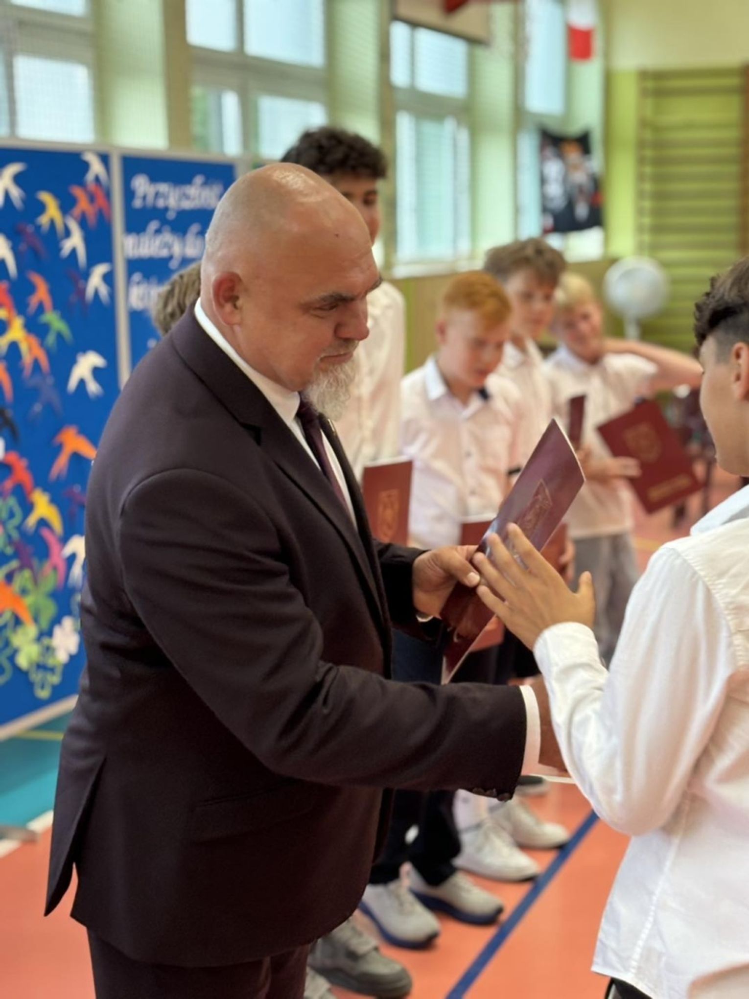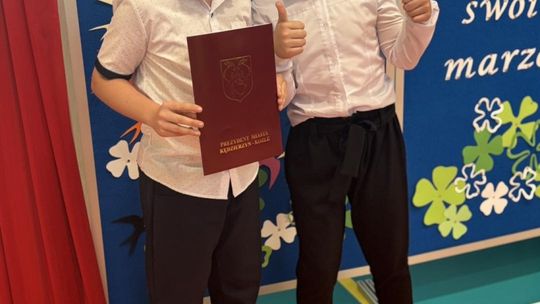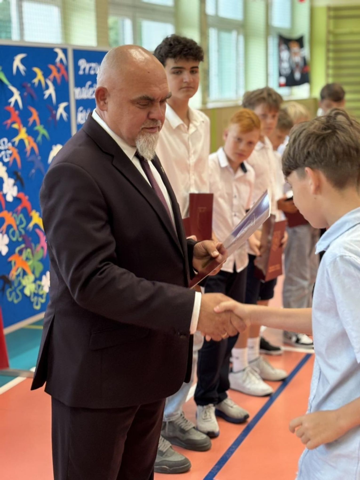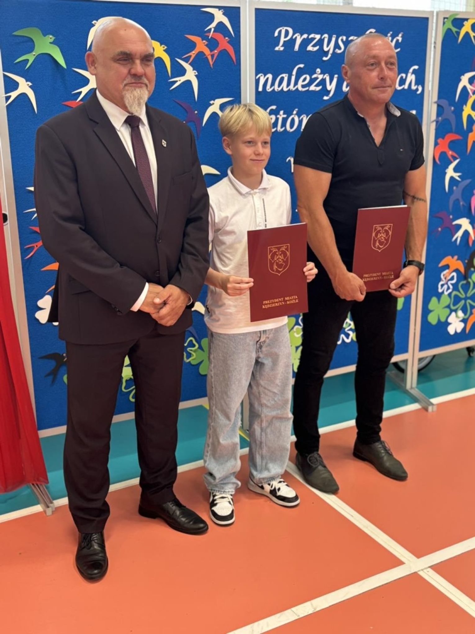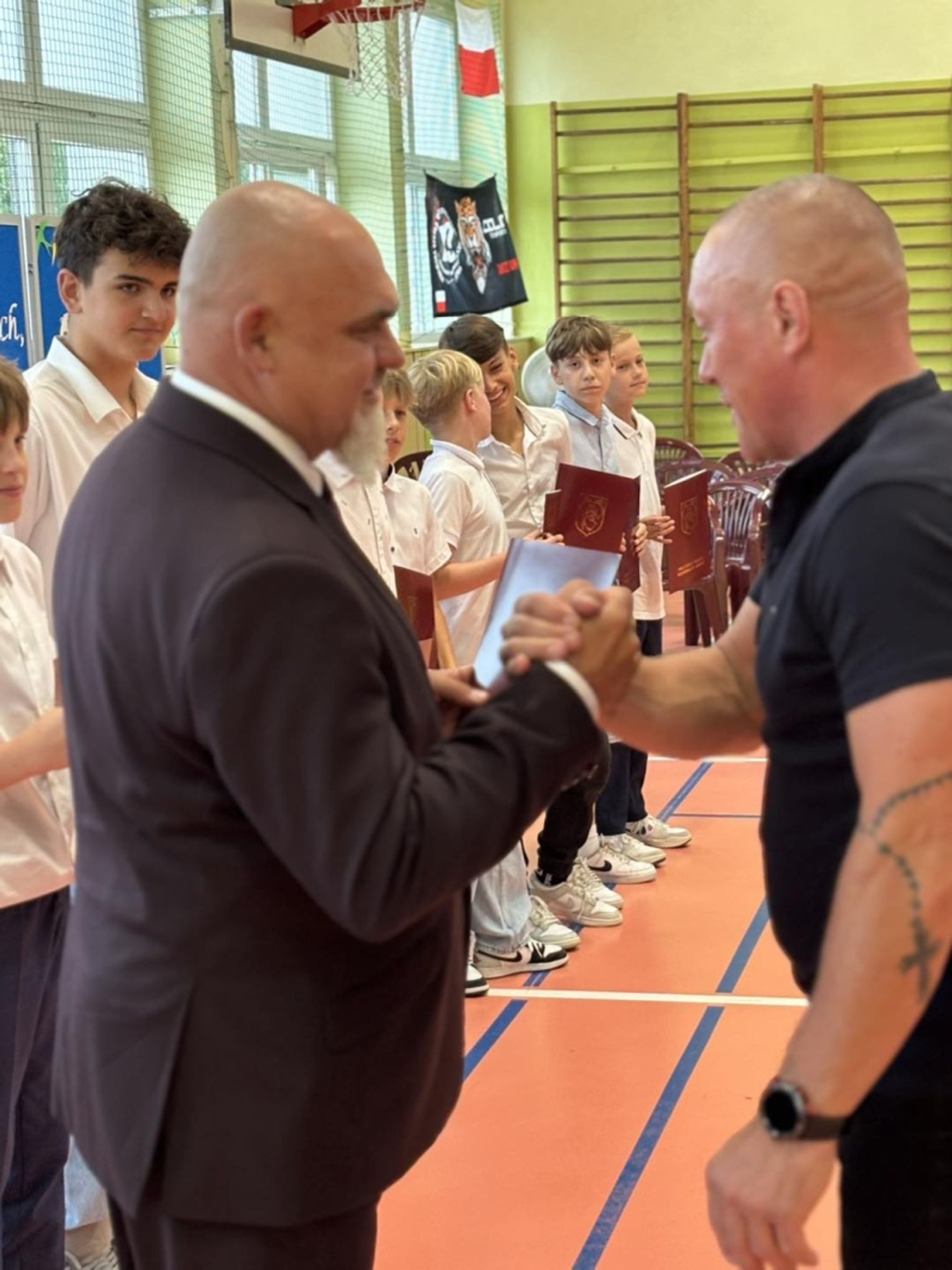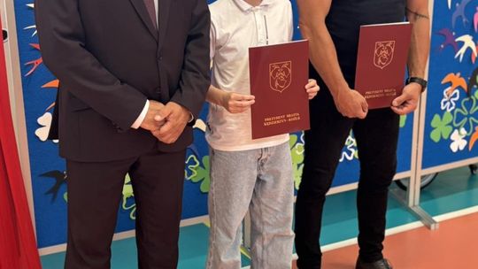 Szkolne reprezentacje w ostatnim czasie sięgnęły po medale mistrzostw Polski. Srebrna ekipa piłkarzy i brązowa drużyna siatkarzy to duma całej placówki. Listy gratulacyjne dla młodych sportowców wręczył zastępcą prezydenta Tomasz Radłowski.