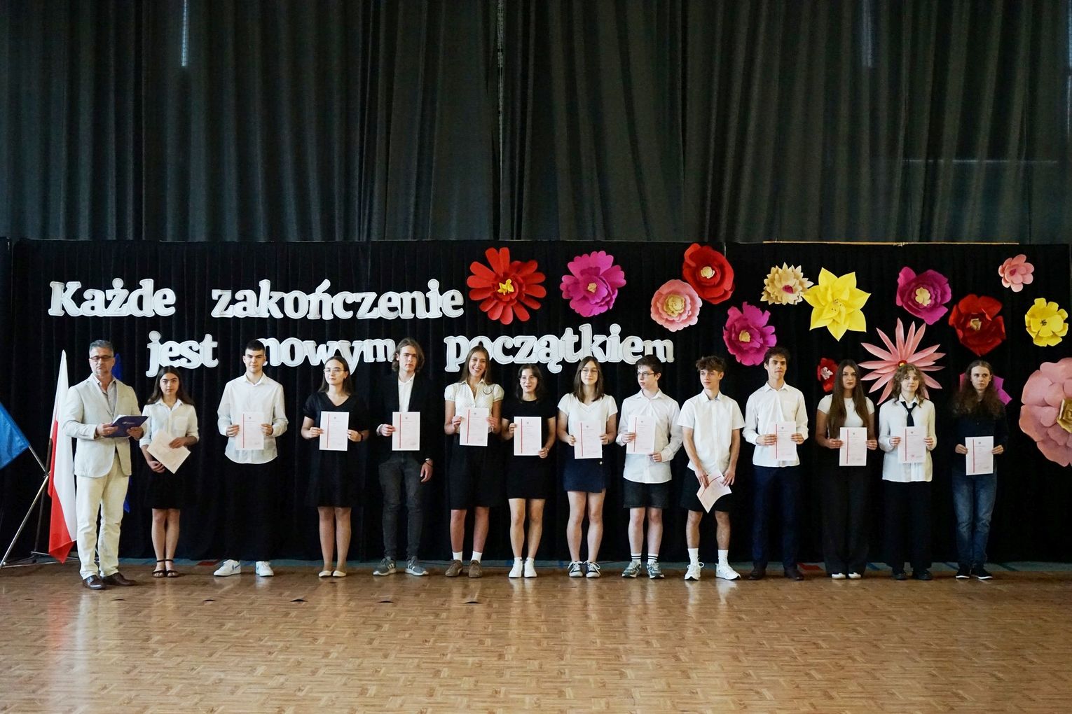 Podczas uroczystości starosta wręczył również szczególne podziękowania nauczycielom zaangażowanym w sukcesy uczniów: Katarzynie Polinowskiej-Miłek, Ryszardowi Wiśniowskiemu, Marzannie Gądek-Radwanowskiej i Kindze Dębskiej. Uczniowie otrzymali liczne nagrody, a część artystyczna uroczystości – przygotowana z niezwykłą klasą – pozwoliła złagodzić łzy wzruszenia uśmiechem.