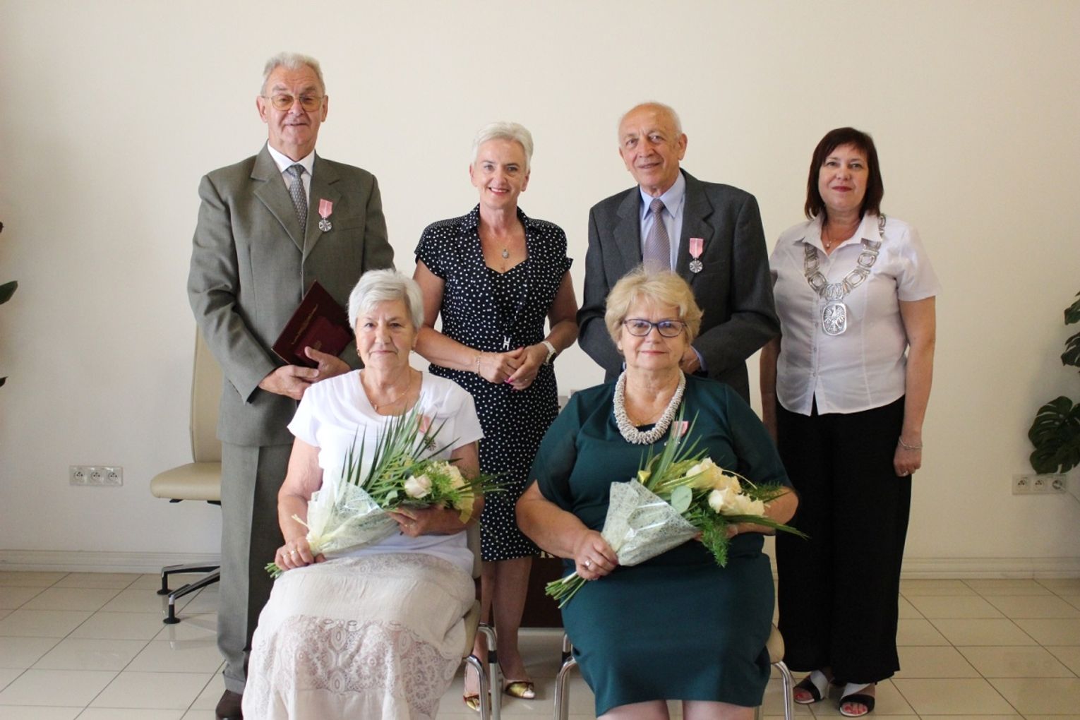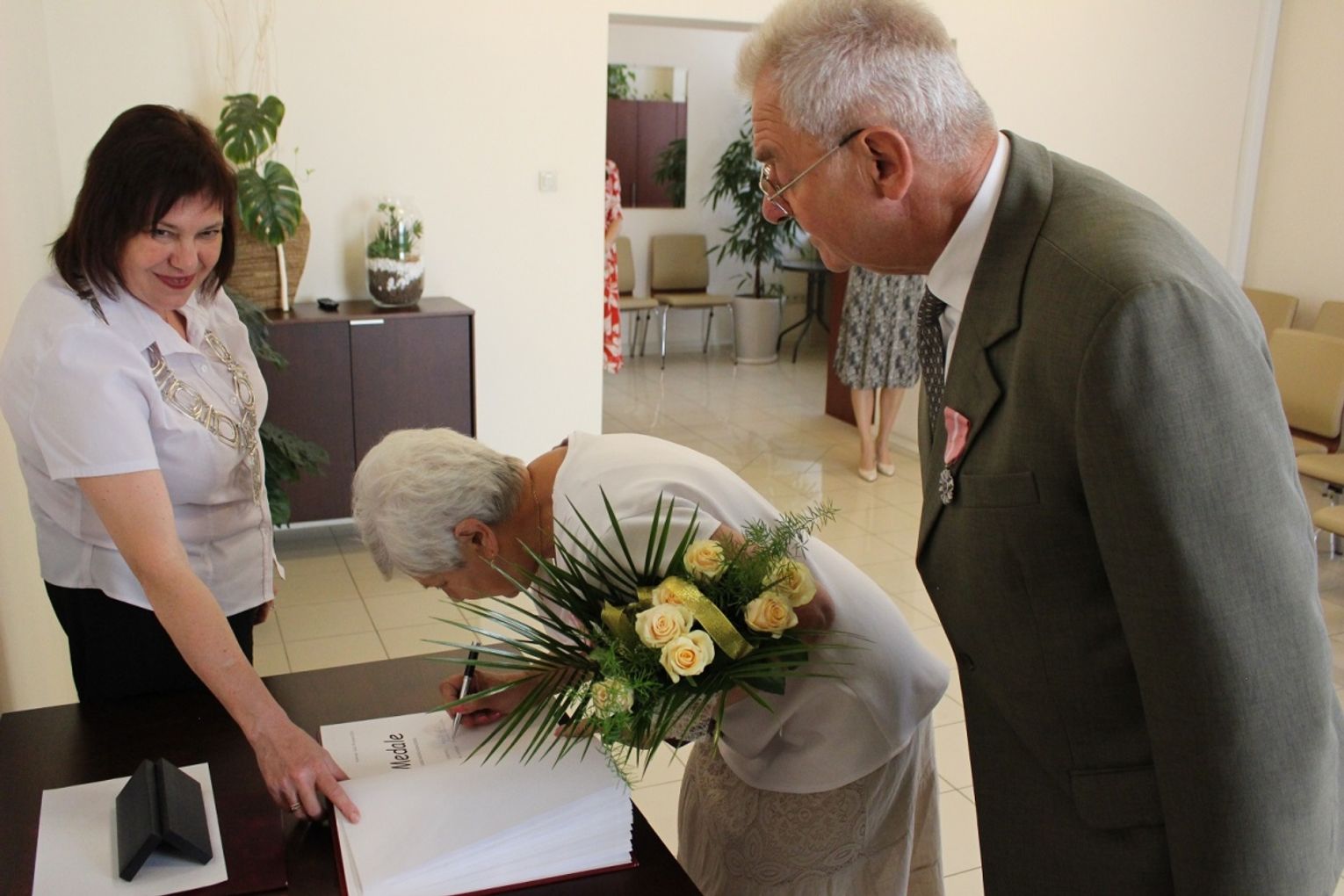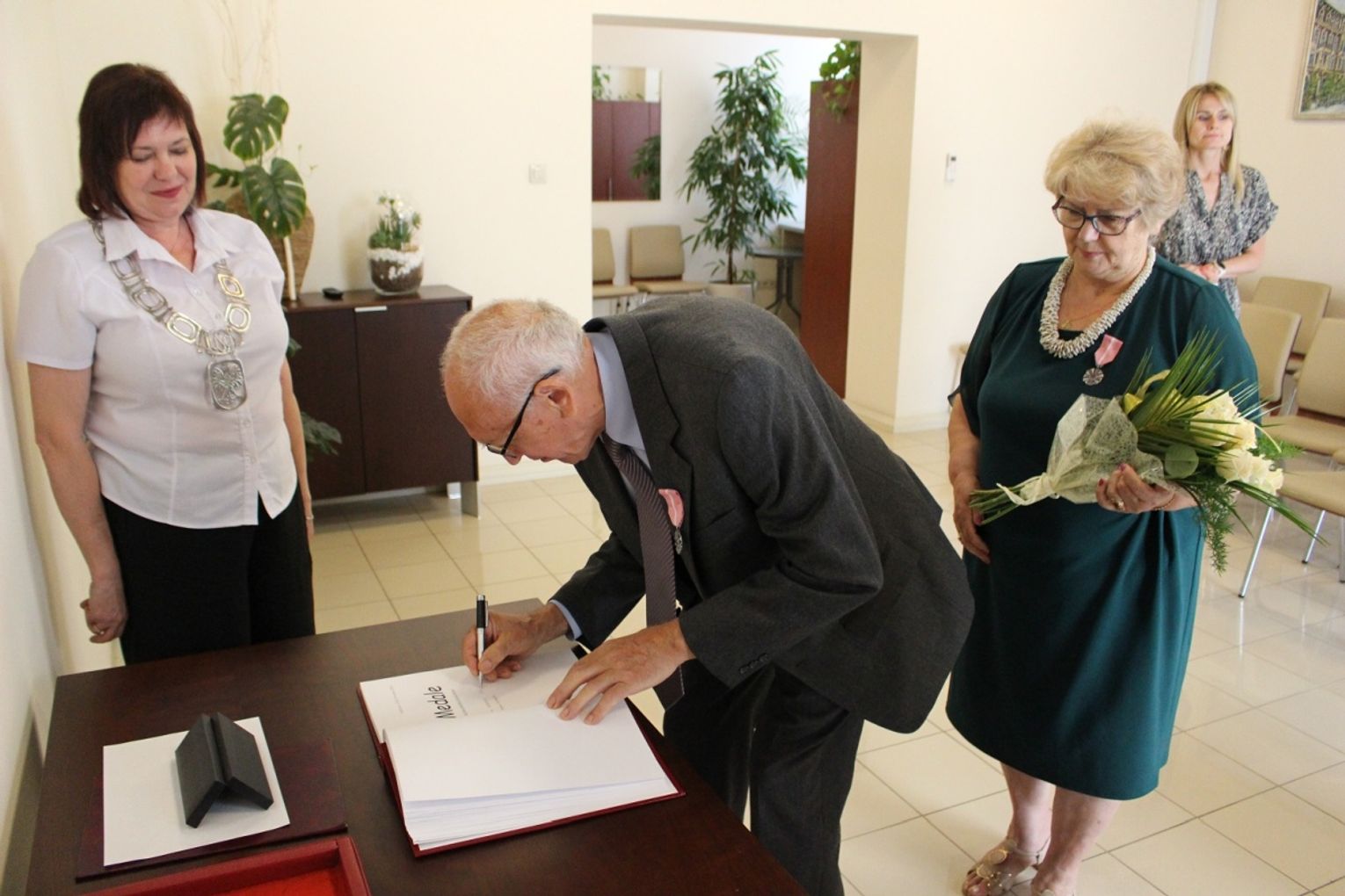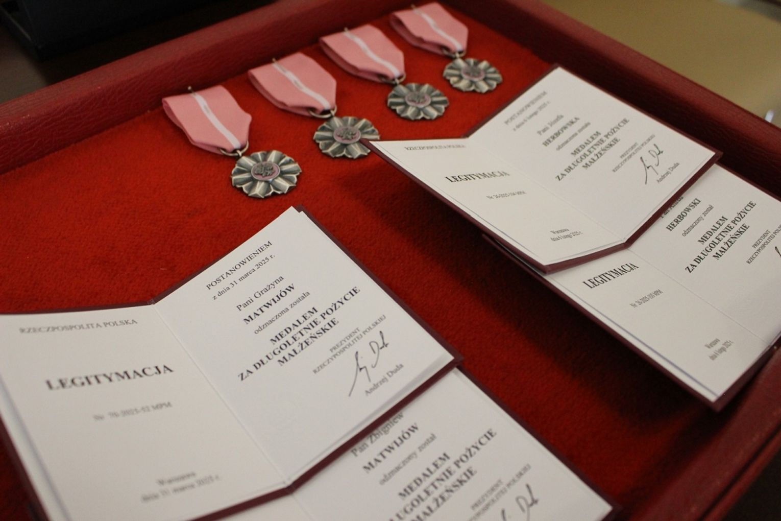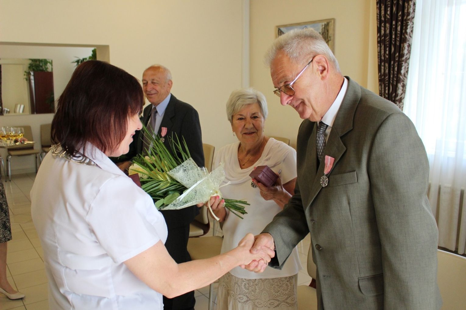 Jubilatom serdeczne gratulacje złożyła prezydent Sabina Nowosielska, wręczając pamiątkowe odznaczenie. Medale "Za Długoletnie Pożycie Małżeńskie" - przyznane przez prezydenta RP - otrzymali: Józefa i Alfred Herbowscy oraz Grażyna i Zbigniew Matwijowie.