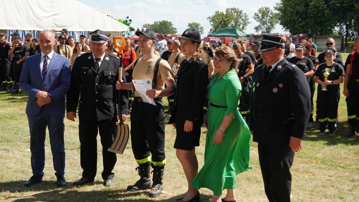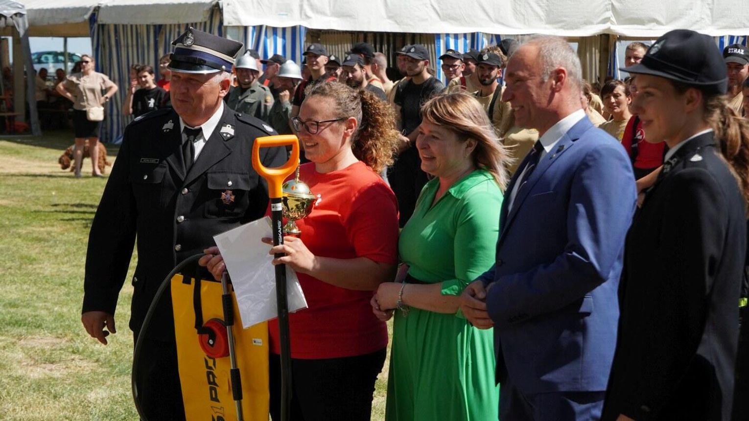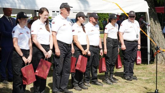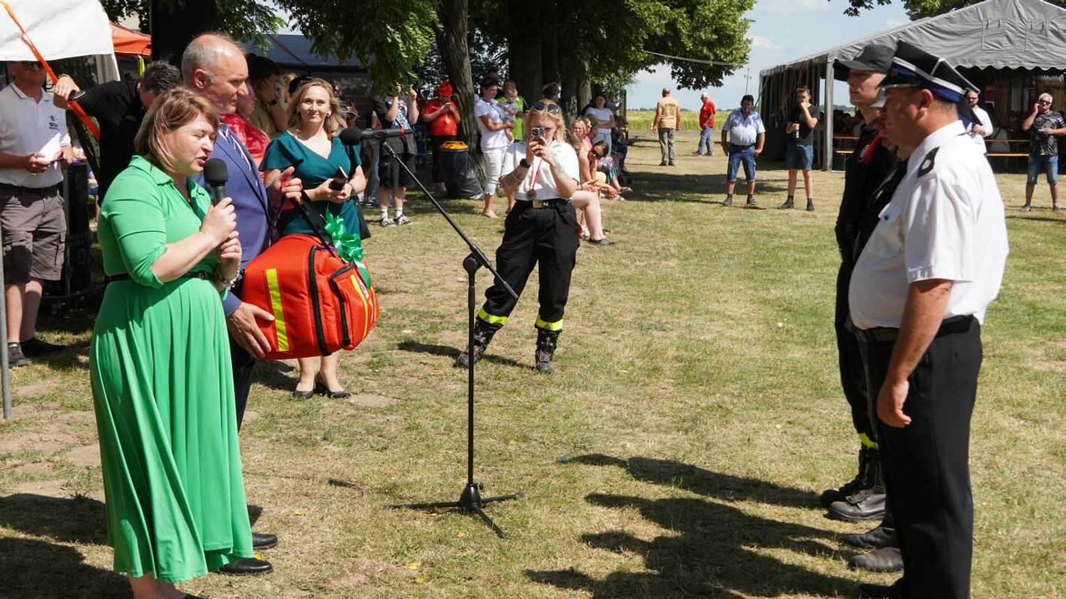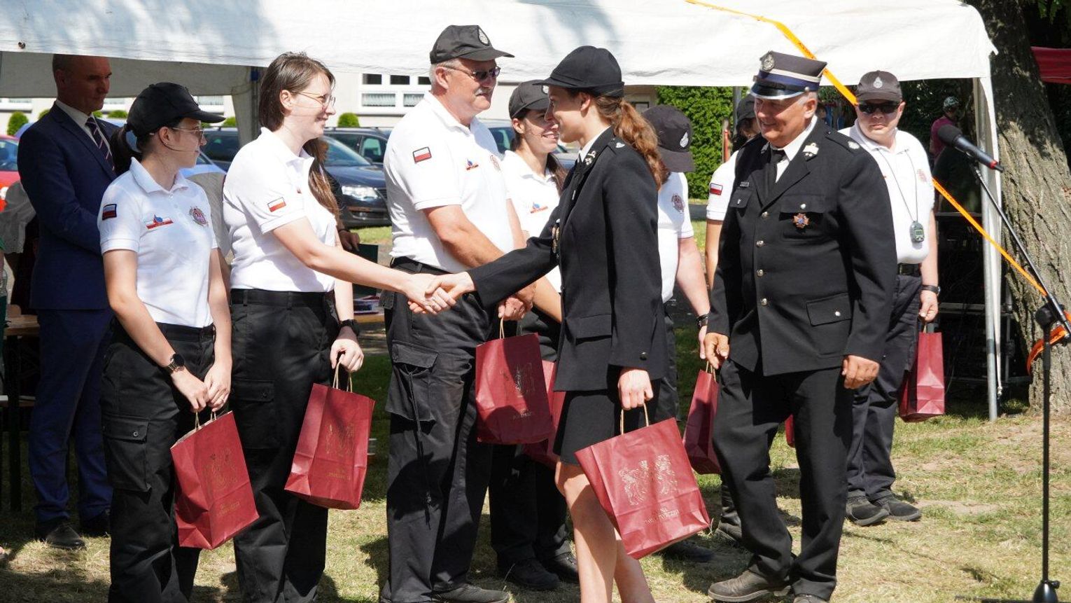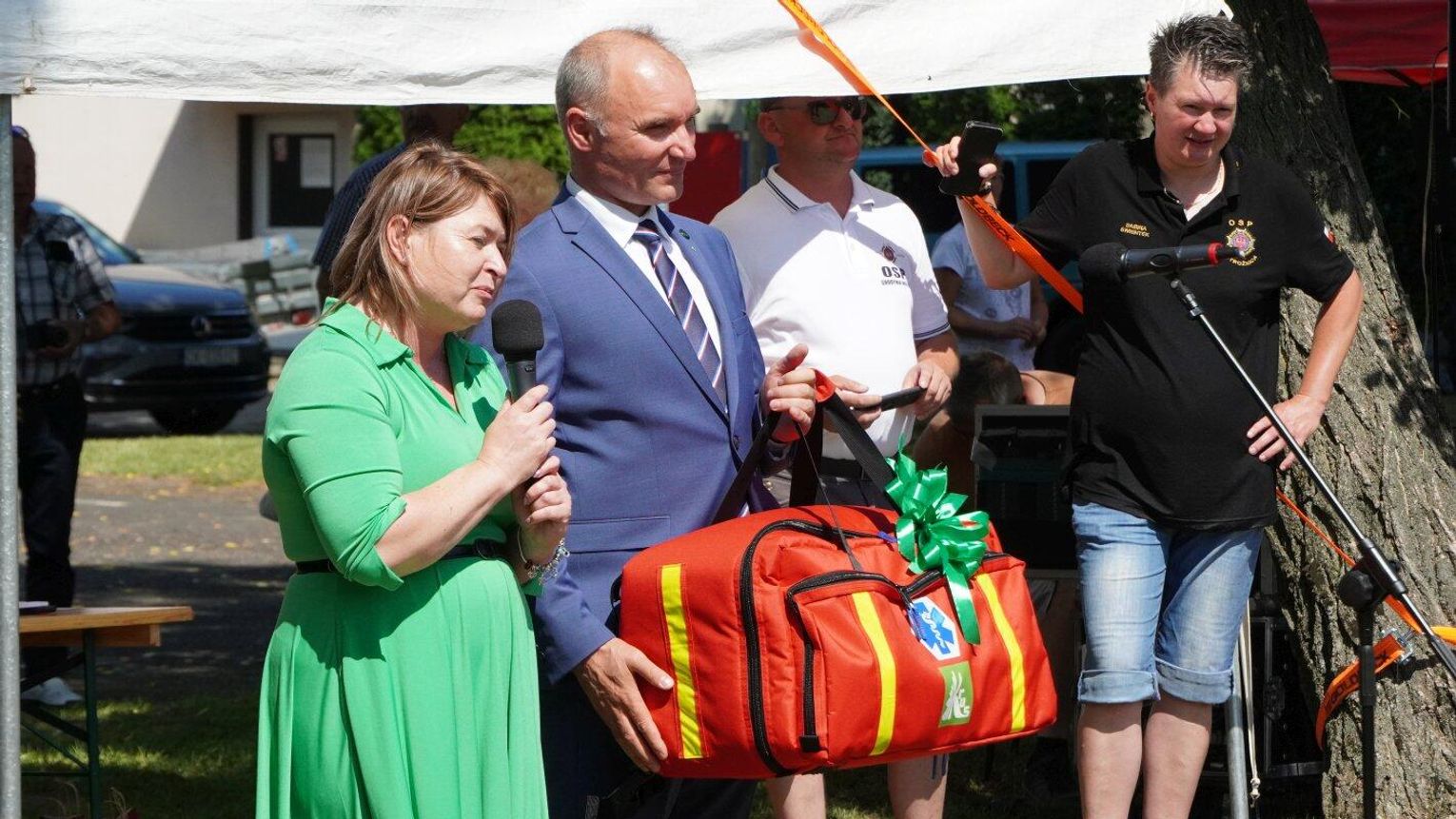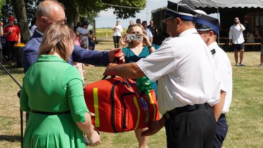 Podczas dekoracji zwycięzców odbyło się również uroczyste przekazanie torby medycznej w standardzie R1 dla OSP Gościęcin. Sprzęt ten, niezwykle ważny w akcjach ratunkowych, został wręczony przez przedstawicieli instytucji: Bożenę Dubas - dyrektor Opolskiego KRUS, Adama Warzechę - p.o. dyrektora ARiMR w Opolu oraz Anitę Juchno - kierownika placówki terenowej KRUS w Głubczycach. Ten gest jest wyrazem wsparcia dla lokalnych strażaków, którzy na co dzień niosą pomoc mieszkańcom regionu.