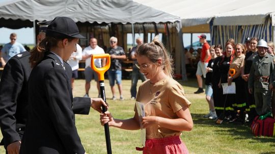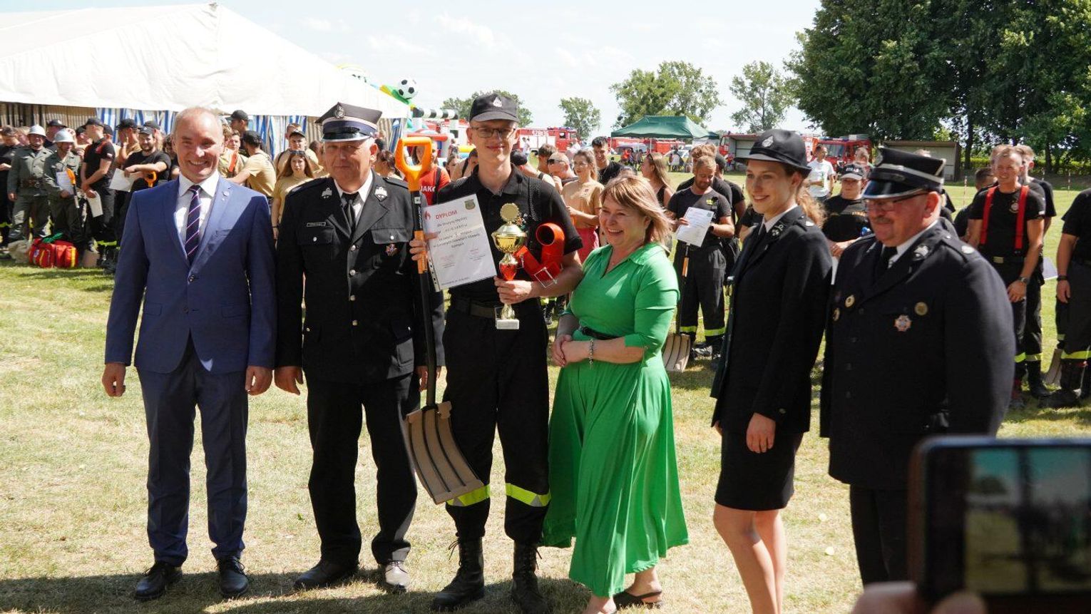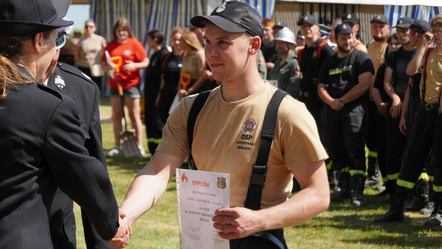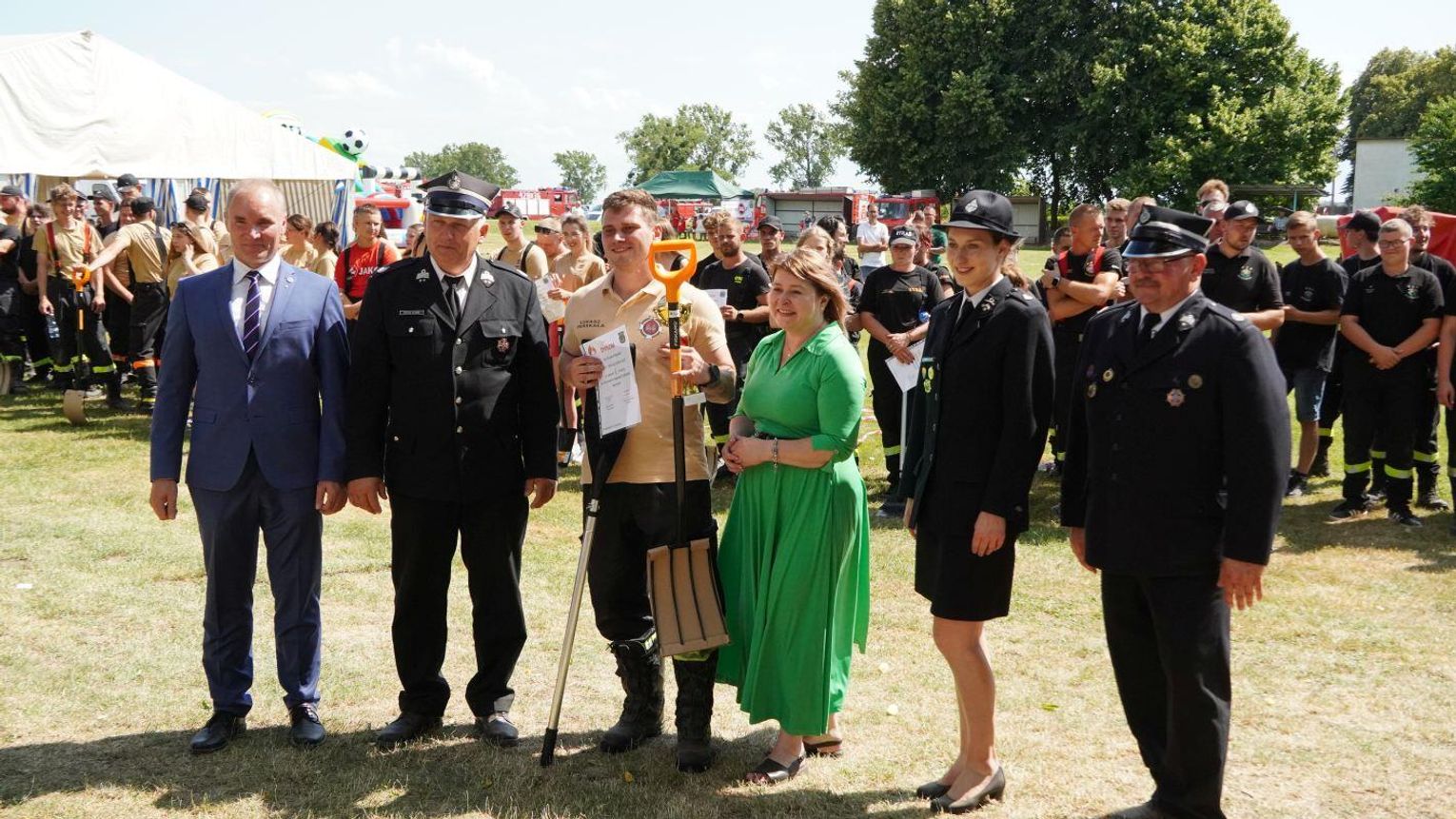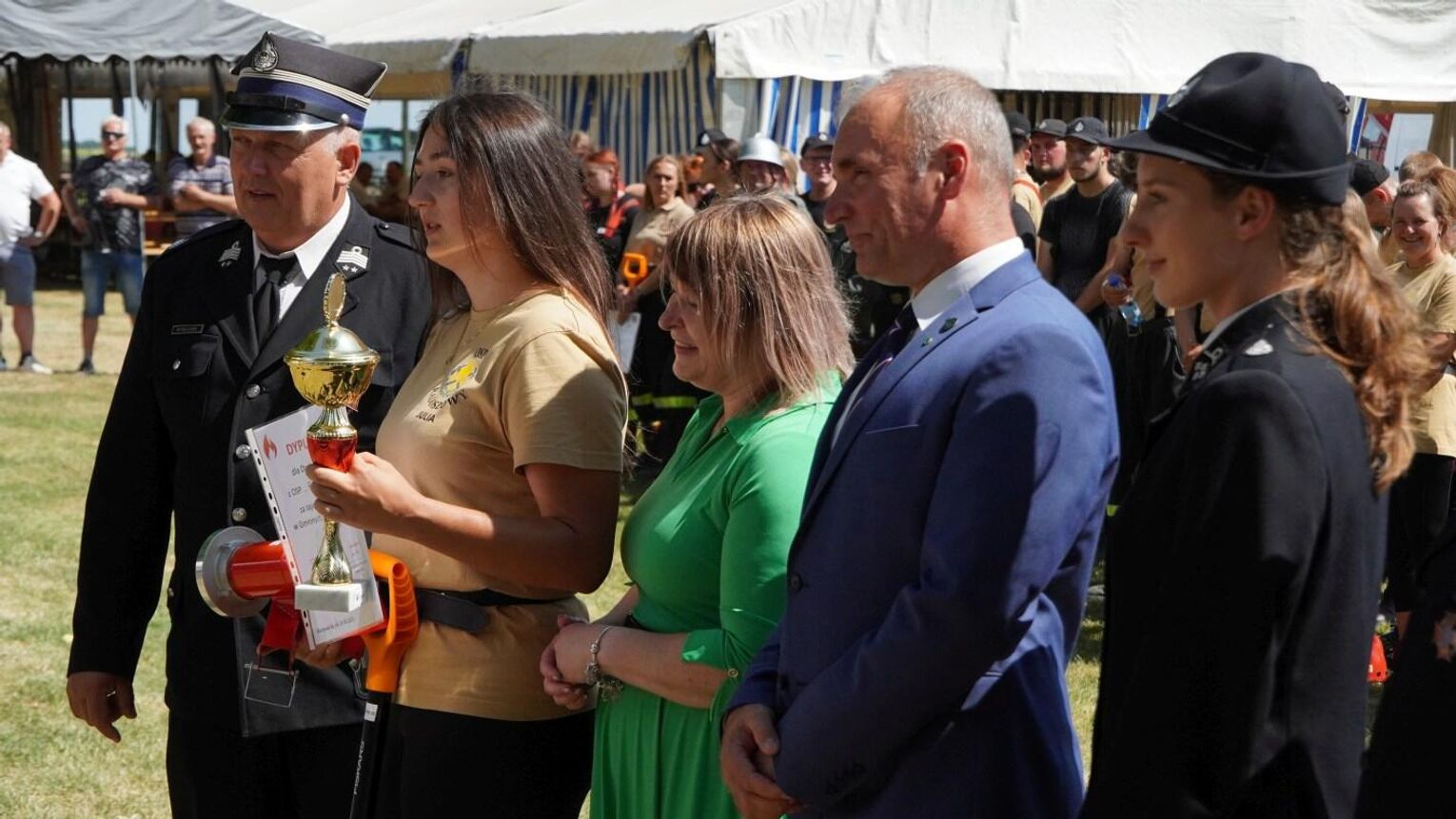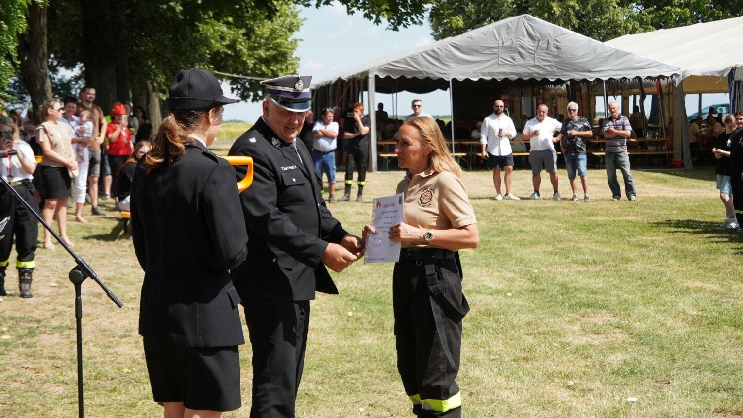 Podczas dekoracji zwycięzców odbyło się również uroczyste przekazanie torby medycznej w standardzie R1 dla OSP Gościęcin. Sprzęt ten, niezwykle ważny w akcjach ratunkowych, został wręczony przez przedstawicieli instytucji: Bożenę Dubas - dyrektor Opolskiego KRUS, Adama Warzechę - p.o. dyrektora ARiMR w Opolu oraz Anitę Juchno - kierownika placówki terenowej KRUS w Głubczycach. Ten gest jest wyrazem wsparcia dla lokalnych strażaków, którzy na co dzień niosą pomoc mieszkańcom regionu.