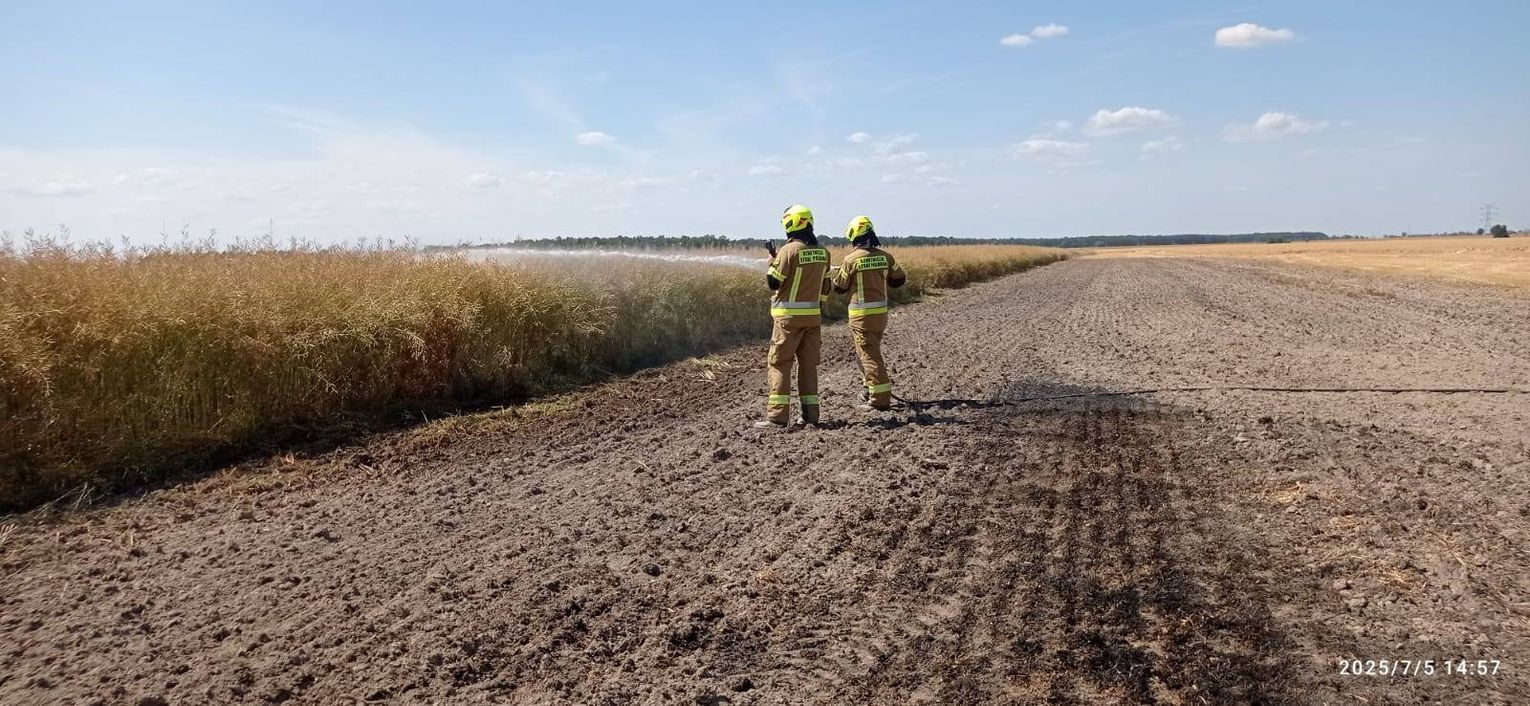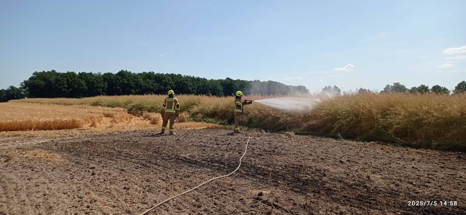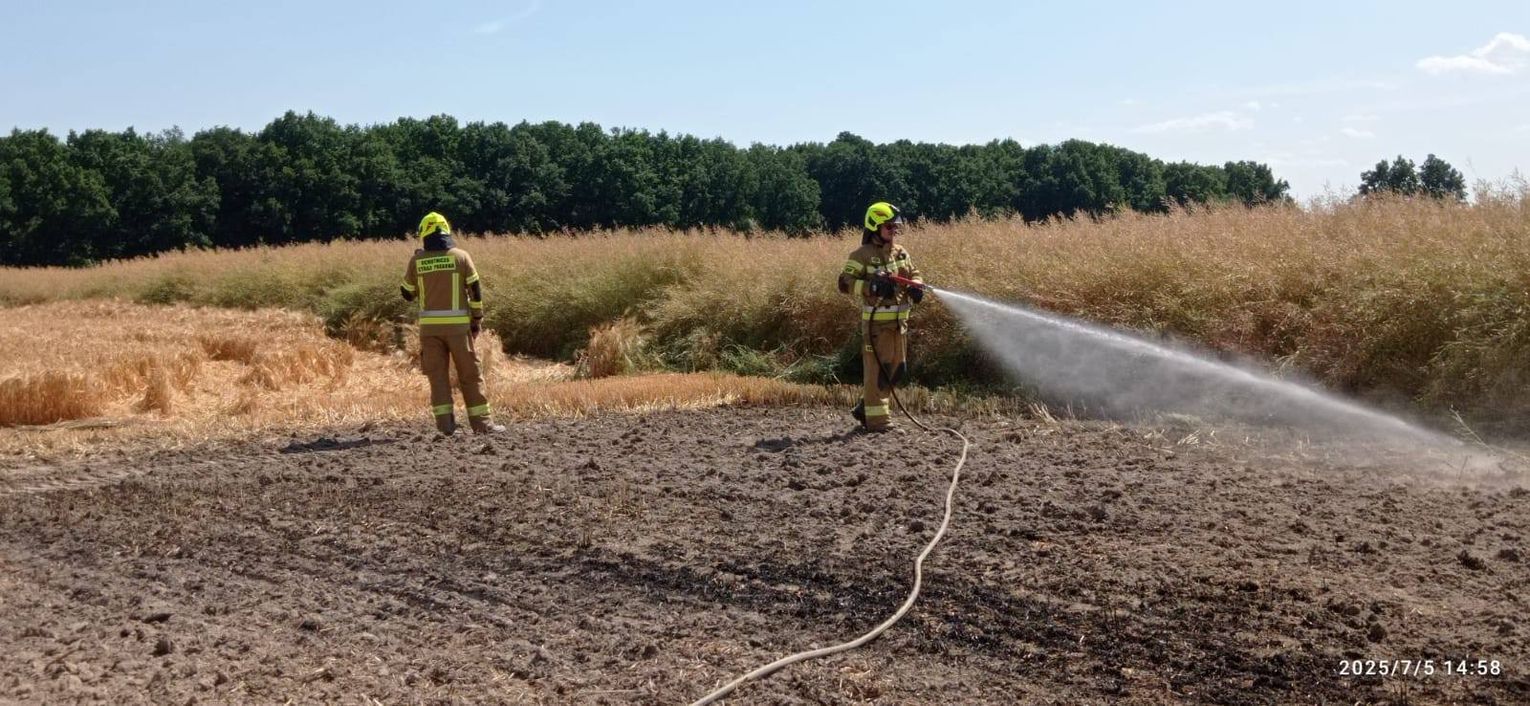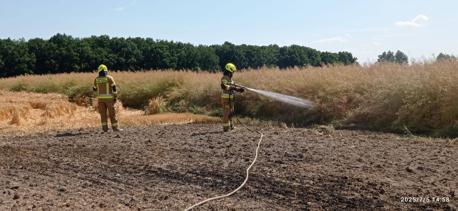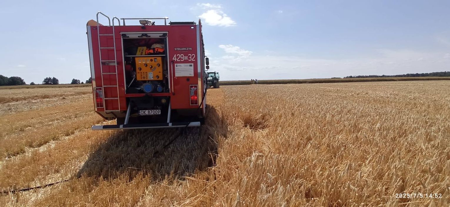 Po dojeździe i rozpoznaniu, okazało się, że zapalił się heder w kombajnie oraz kawałek ścierniska wokół. Sytuacja była już opanowana przez rolników. Działania polegały na zabezpieczeniu miejsca zdarzenia, schłodzeniu hedera, przelaniu pogorzeliska oraz terenu wokół.