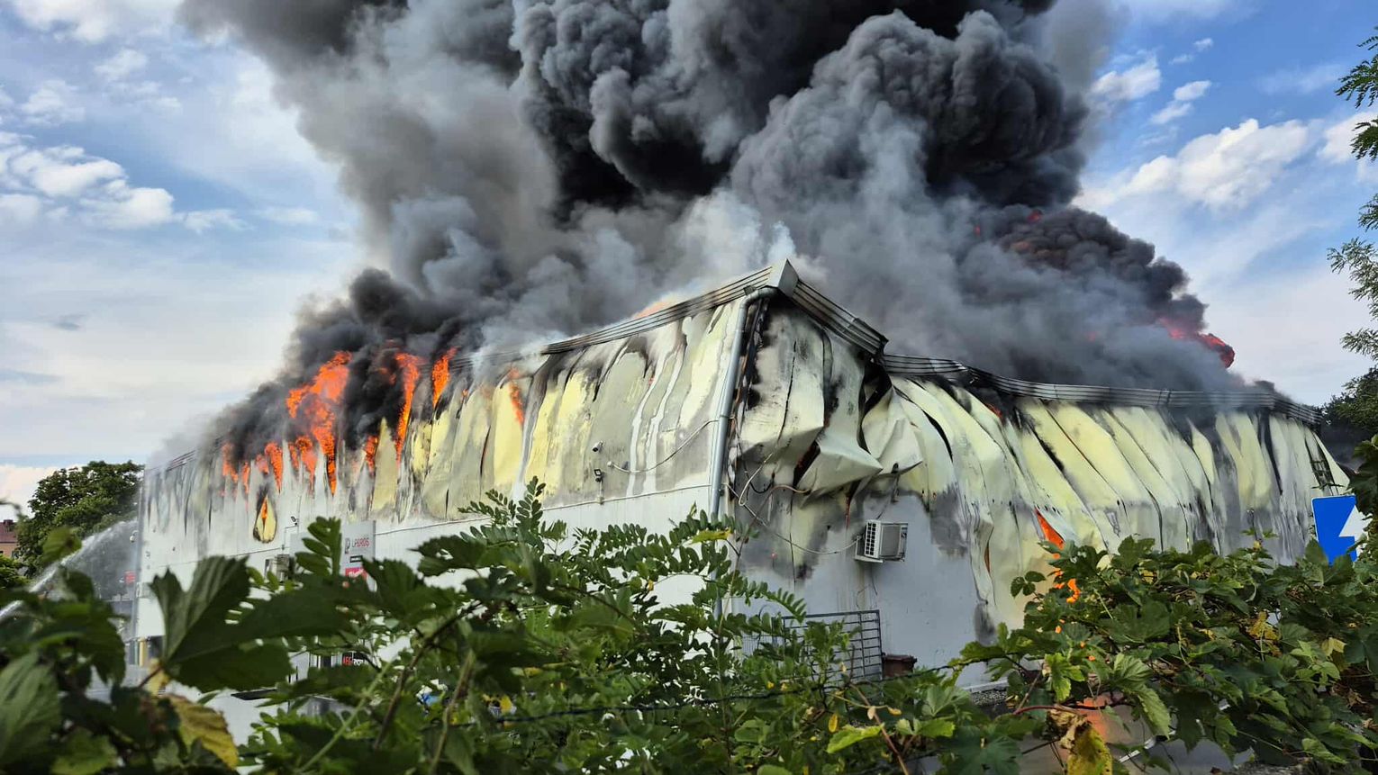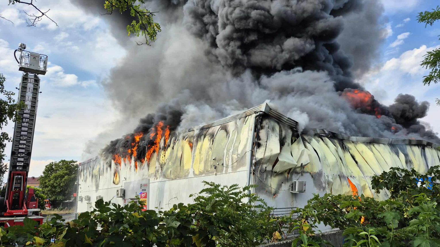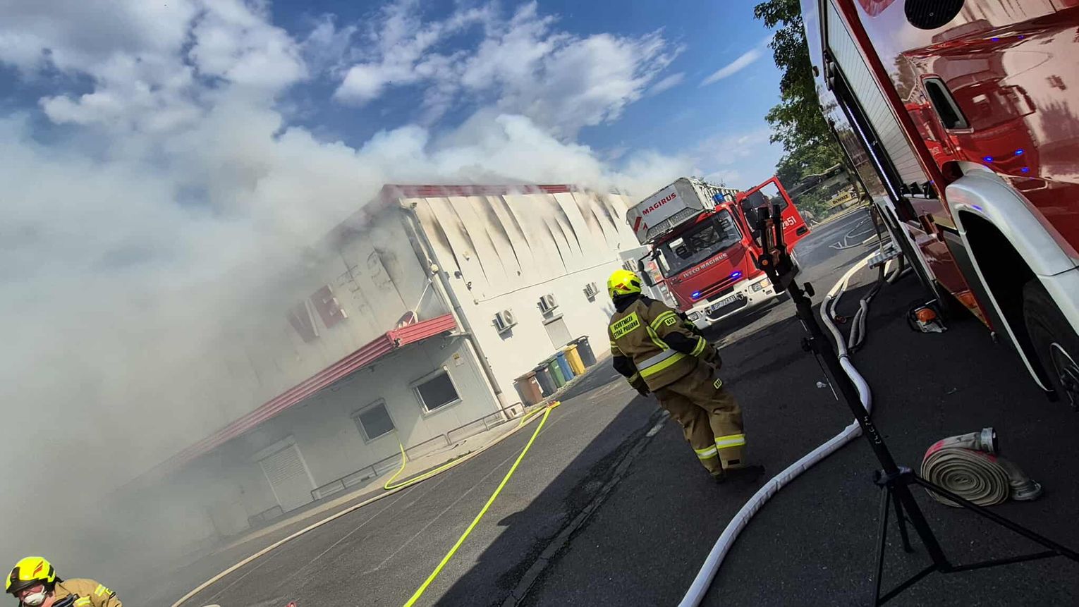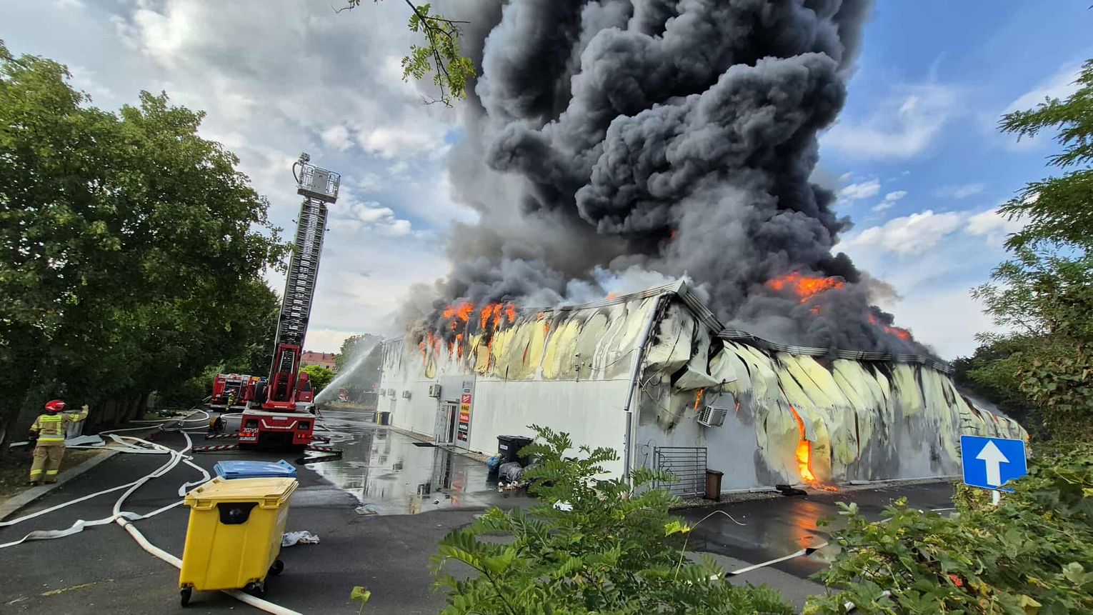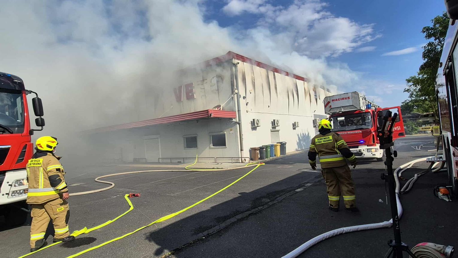 Na miejsce natychmiast zadysponowano siły i środki zarówno Państwowej, jak i Ochotniczej Straży Pożarnej. Po dotarciu pierwszych jednostek potwierdzono rozwinięty pożar hali, w której składowany był sprzęt sportowy – w tym rowery oraz hulajnogi elektryczne.