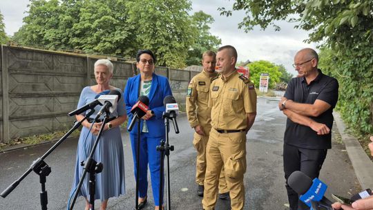 - Jesteśmy na miejscu tragedii, która się tu wczoraj rozegrała. Chciałam tu porozmawiać zarówno z dowódcami akcji ratowniczej, jak i panią prezydent miasta, aby zorientować się jak wygląda sytuacja na kilkanaście godzin po pożarze. Jak widać akcja dogaszania tego miejsca cały czas trwa. Chciałam przede wszystkim wyrazić wdzięczność i wielki podziw dla tych ponad 200 strażaków, którzy wczoraj w tych trudnych warunkach towarzyszących temu niezwyczajnemu pożarowi pracowali, służyli z narażaniem własnego życia. W Kędzierzynie już od soboty działo się bardzo dużo. Najpierw wydawało nam się, że alerty RCB dotyczące zakazu korzystania z rzeki Kłodnicy w związku z pojawieniem się złotej algi, to będzie jedyne zmartwienie na ten weekend. Życie pokazało inny scenariusz. Wczoraj zarówno las, który w tej chwili jest dogaszany, jak i hurtownia przy ul. Stalmacha, były objęte działaniami gaśniczymi na skutek pożaru. Rozmawialiśmy też z właścicielami tych obiektów. Oczywiście pierwsze informacje i pytania dotyczyły tego, czy nikt nie ucierpiał z pracowników, mieszkańców oraz ratowników. Druga kwestia to ogromne straty poniesione na skutek tego zdarzenia. Akcja gaśnicza trwa i jeszcze wiele pracy przed strażakami. Mam nadzieję, że wszystko zakończy się w miarę pomyślnie i nie będzie żadnej nowej niespodzianki, którą kryją kontenery znajdujące się na terenie tego pogorzeliska. Chciałabym też poprosić o wypowiedź panią prezydent, która spędziła tu wczoraj wiele godzin, wspierając zaangażowane w tę akcję służby w tym straż miejską i policję. Wczorajszy alert RCB nie na wszystkich wystarczająco poskutkował. Prosiliśmy, aby mieszkańcy zachowali ten kilometr odległości od miejsca zdarzenia, aby przebywali w swoich domach i pozamykali okna. Niestety ciekawość była silniejsza niż logika i zdrowy rozsądek – dodała wojewoda Monika Jurek.