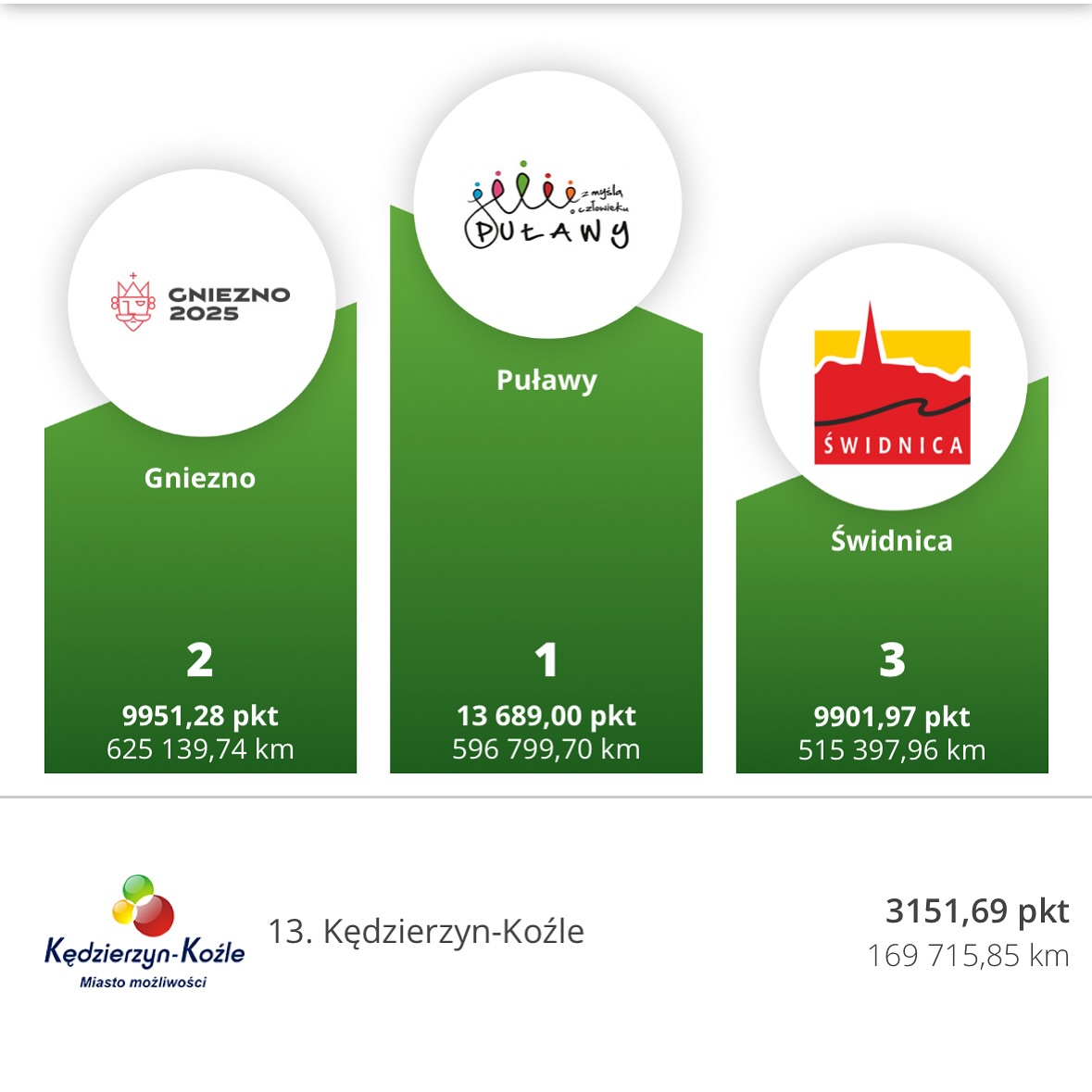 W tegorocznej edycji miasto Kędzierzyn-Koźle zajęło wysokie 13 miejsce w gronie 54 sklasyfikowanych miast w Polsce oraz ustanowiło nowy rekord.