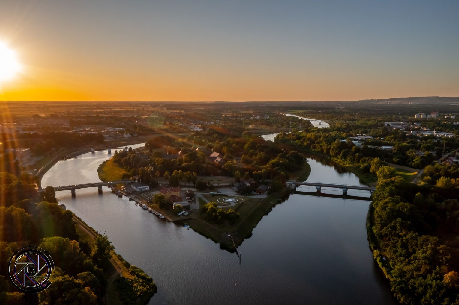 Kadry uchwycone z drona pokazują Koźle i jego okolice w ciepłym, złotym świetle, które nadaje krajobrazowi niemal filmowy charakter. Wśród ujęć znajdziemy panoramę starówki z widokiem na rynek i zabytkową zabudowę, meandrującą Odrę, przystań wodną, śluzę oraz otulające centrum miasta lasy.