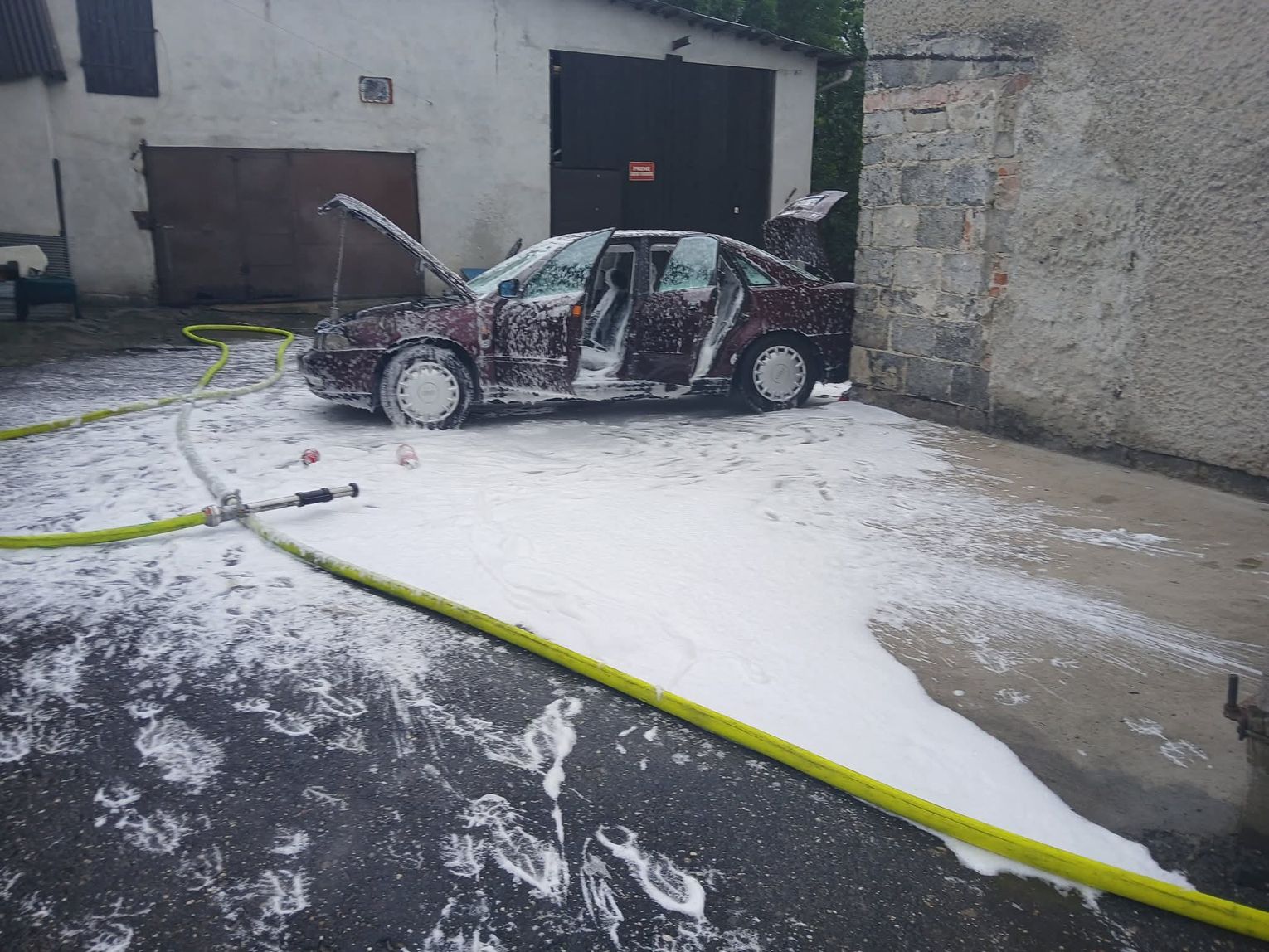 Po przybyciu na miejsce strażacy zastali pojazd marki Audi A4, z którego wydobywał się dym i częściowo ogień.