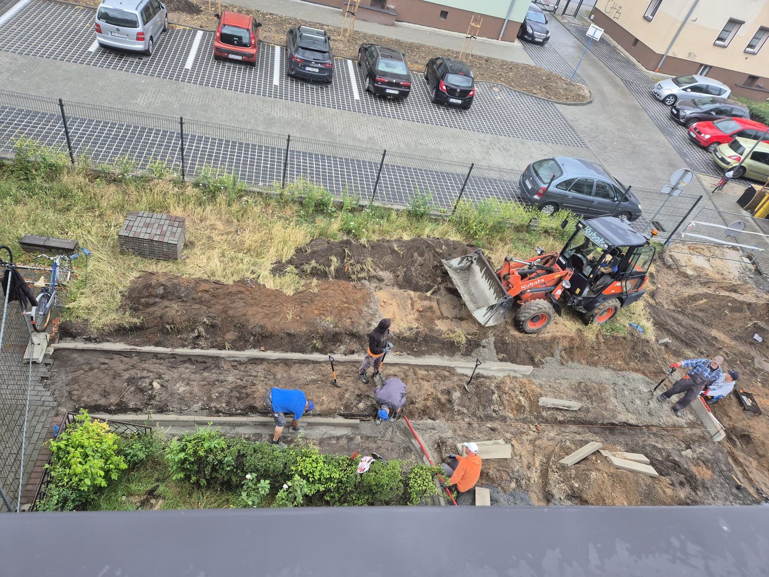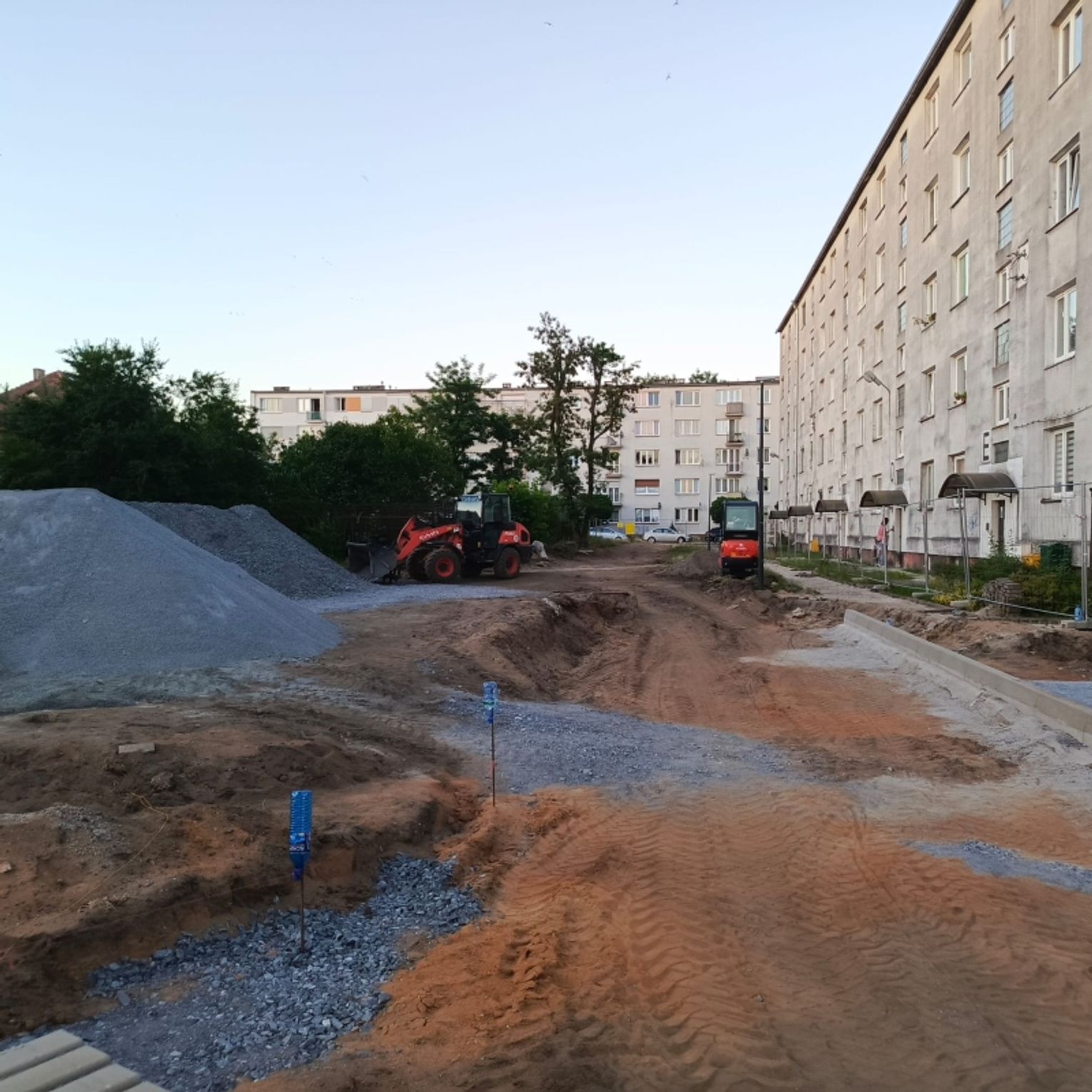 Utrudniony jest dostęp do budynków, w związku z budową drogi i chodnika, co jest naturalne przy każdej tego typu inwestycji. Dostęp do parkingu zostanie umożliwiony po wykonaniu zadania.