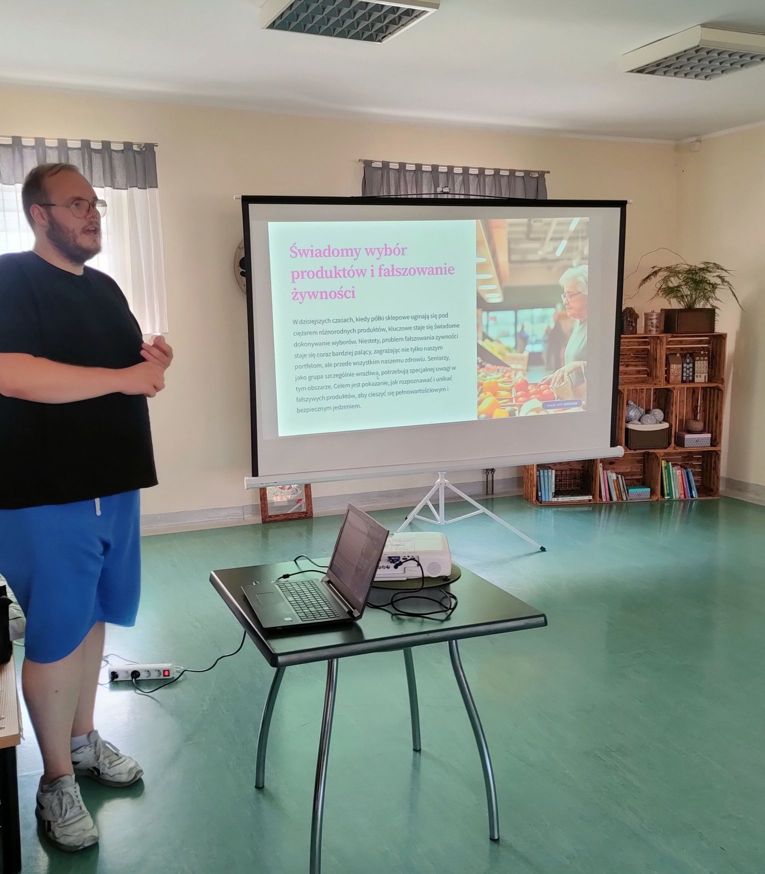 Wykład poprowadził praktykant, student kierunku „Dietetyka i jakość żywności” Politechniki Opolskiej - Dawid Moczko.