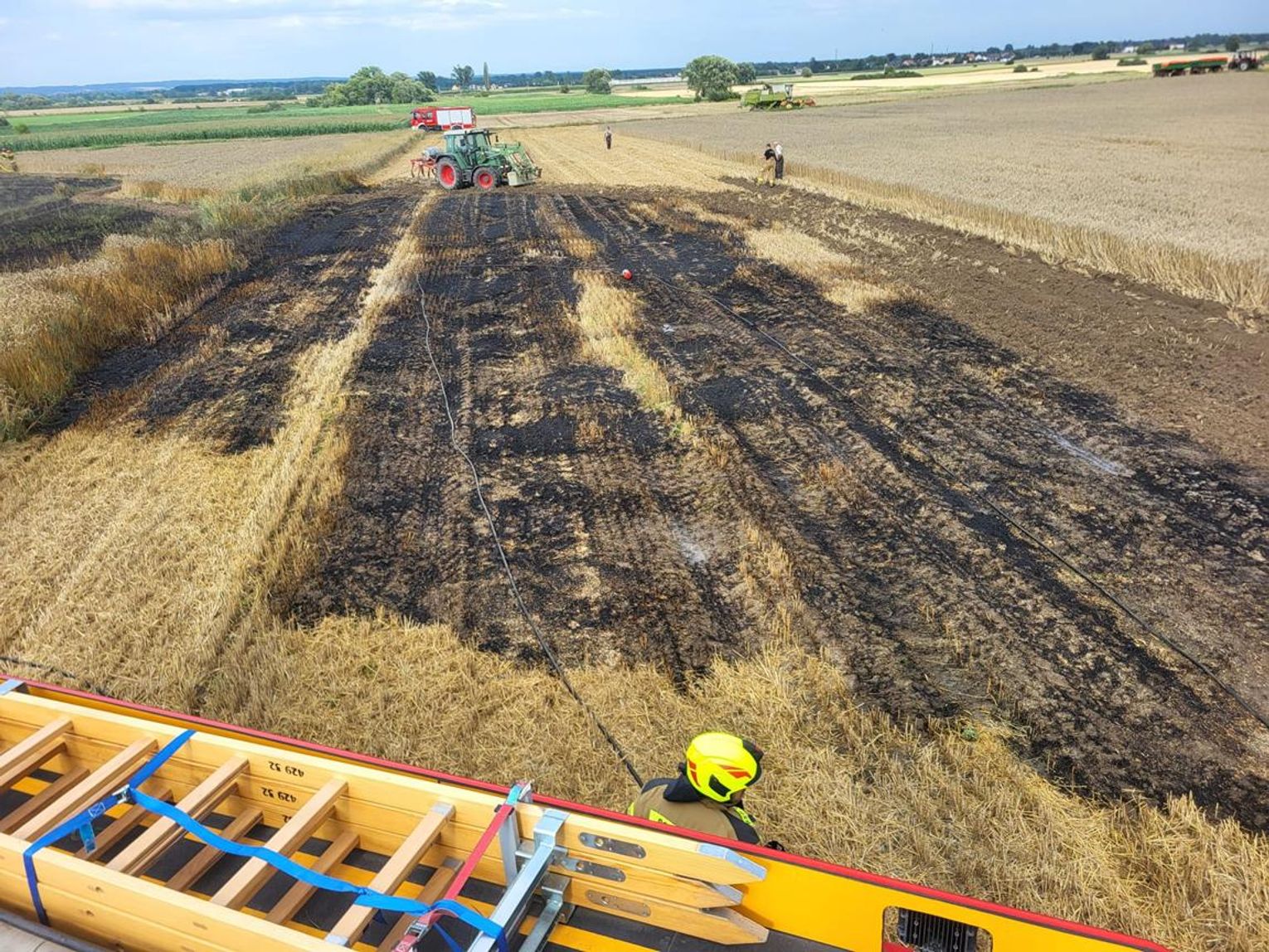 Ogień objął około trzy ary upraw oraz zalegającą na polu słomę. Dzięki błyskawicznej i skoordynowanej akcji gaśniczej, w której uczestniczyły dwa zastępy Państwowej Straży Pożarnej z Jednostki Ratowniczo-Gaśniczej nr 2 oraz trzy zastępy Ochotniczych Straży Pożarnych, udało się opanować pożar i zapobiec jego dalszemu rozprzestrzenieniu. Strażacy skutecznie działali zarówno na froncie ognia, jak i zabezpieczali granice pola, chroniąc w ten sposób kilkadziesiąt hektarów upraw przed zniszczeniem. Akcja była prowadzona w trudnych warunkach – wysoka temperatura i susza sprzyjały rozprzestrzenianiu się ognia. Tym bardziej należy podkreślić profesjonalizm i sprawność działań służb ratowniczych.