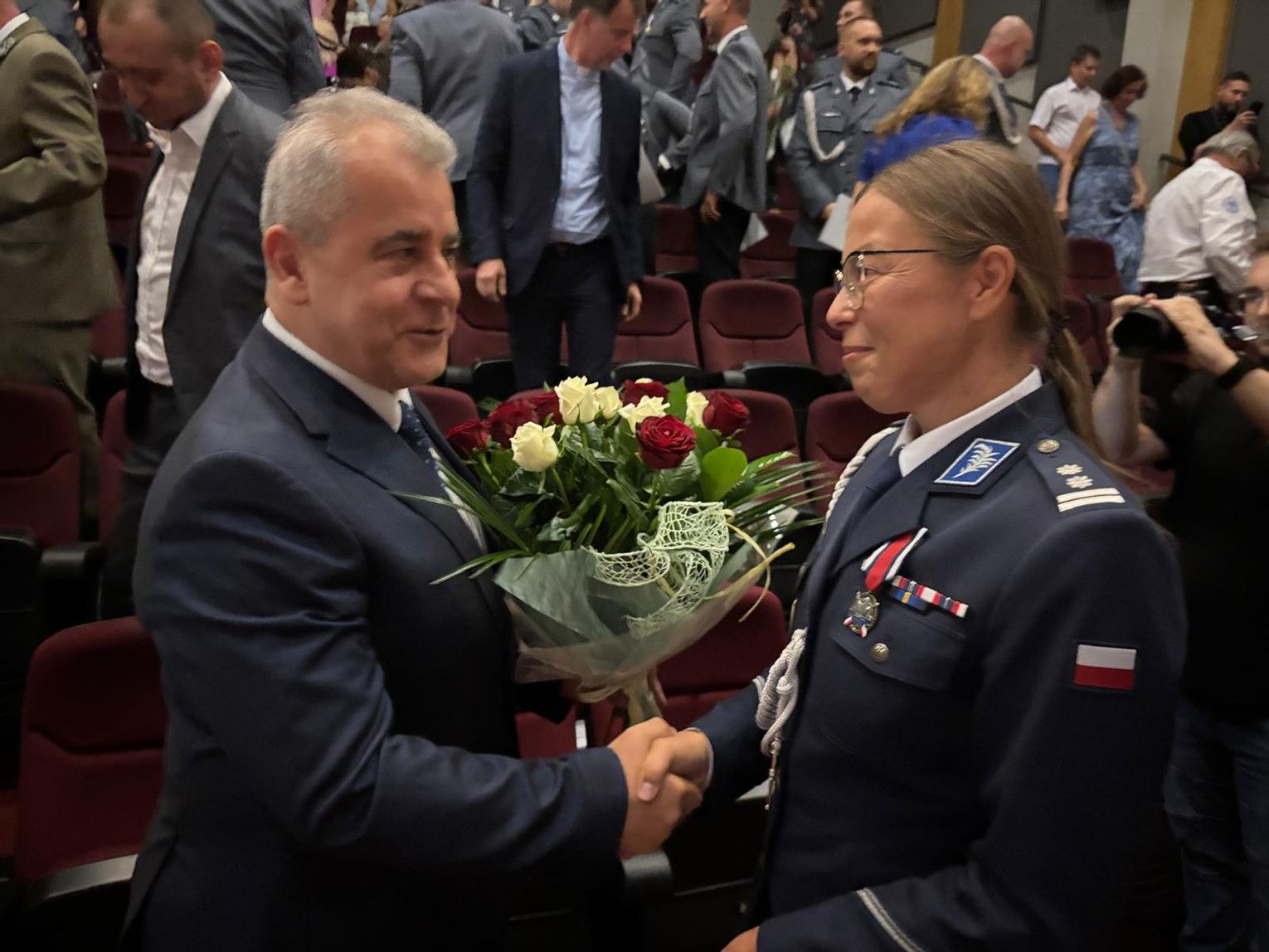 Nominacje funkcjonariuszom z naszego miasta wręczyli zastępca komendanta wojewódzkiego insp. Zbigniew Stanowski oraz komendant powiatowy mł. insp. Iwona Żurawska. Ten wyjątkowy dzień, zgodnie z tradycją, jest także okazją do wręczenia awansów. W tym roku akty mianowania na wyższe stopnie otrzymało 33 mundurowych.