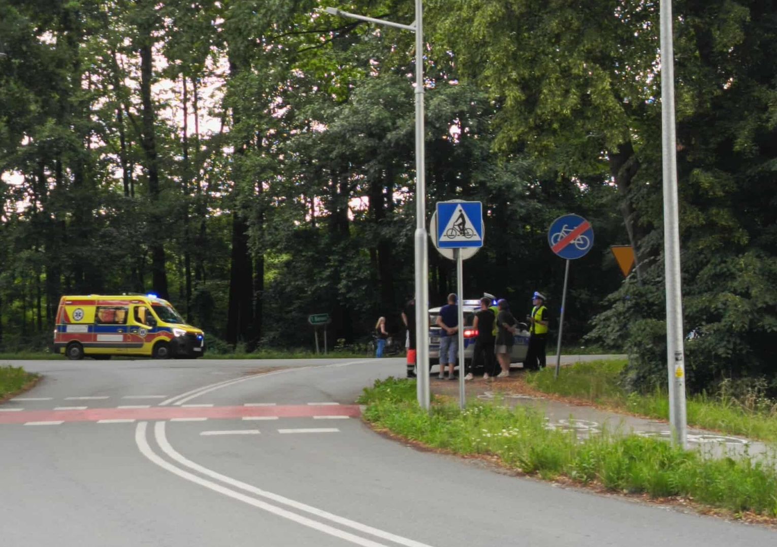 Poszkodowana kobieta została przetransportowana przez Zespół Ratownictwa Medycznego do szpitala, gdzie udzielono jej pomocy medycznej. Zdarzenie zostało zakwalifikowane jako kolizja.