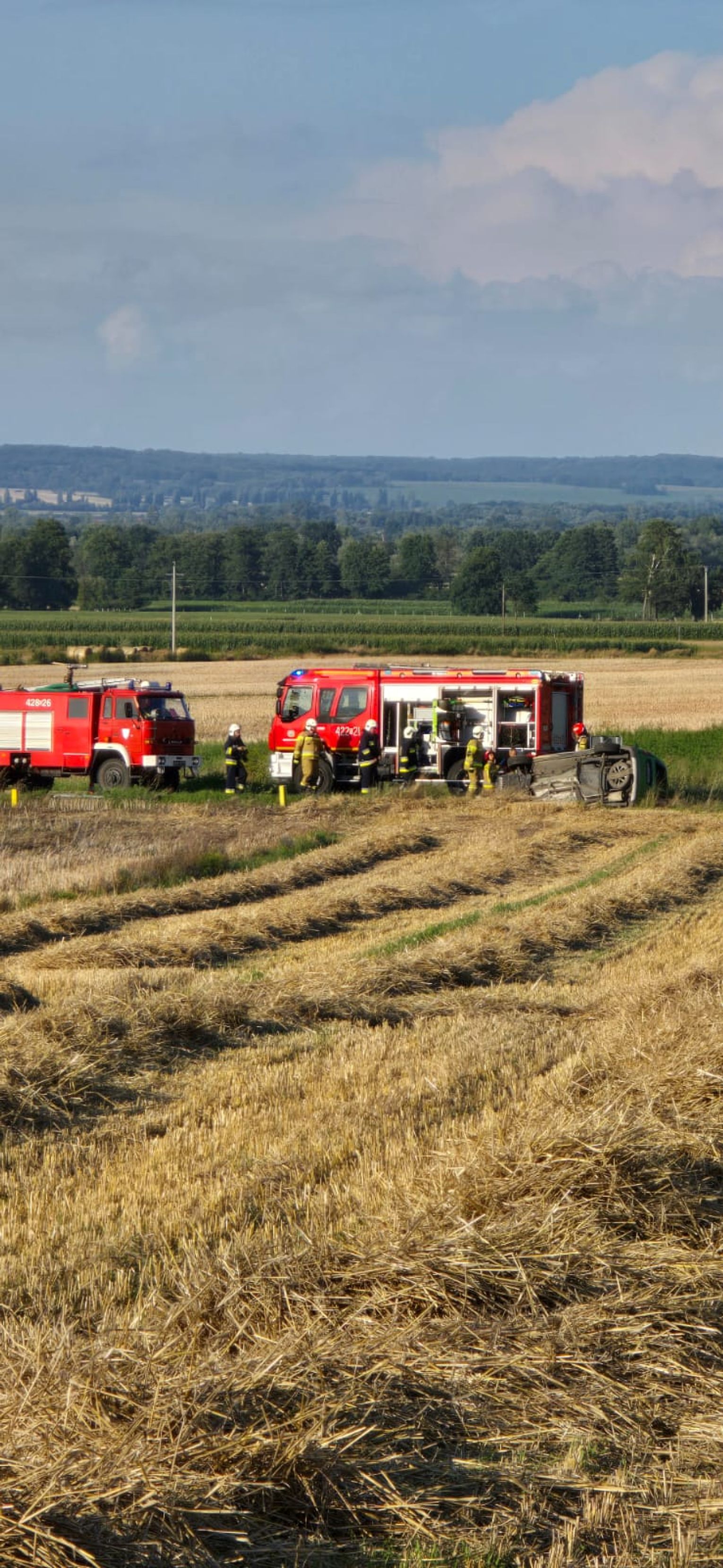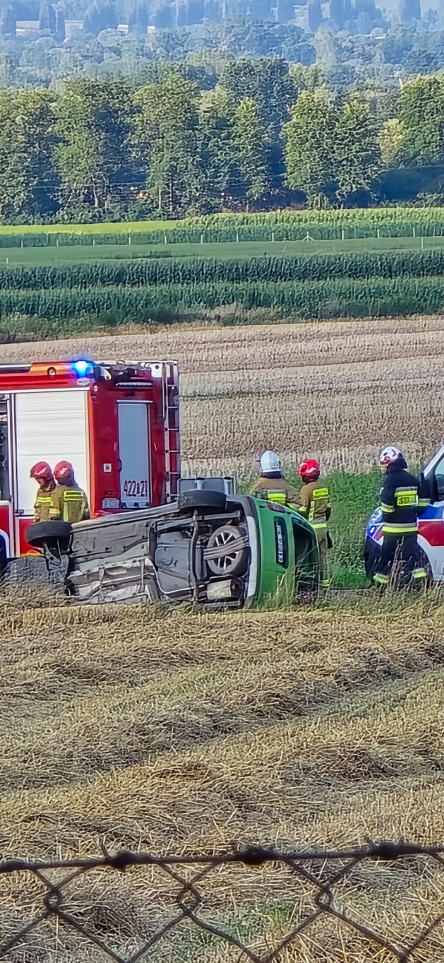 Na miejsce zadysponowano zespół ratownictwa medycznego, straż pożarną oraz policję. Mężczyzna zdołał samodzielnie opuścić pojazd przed przybyciem służb.