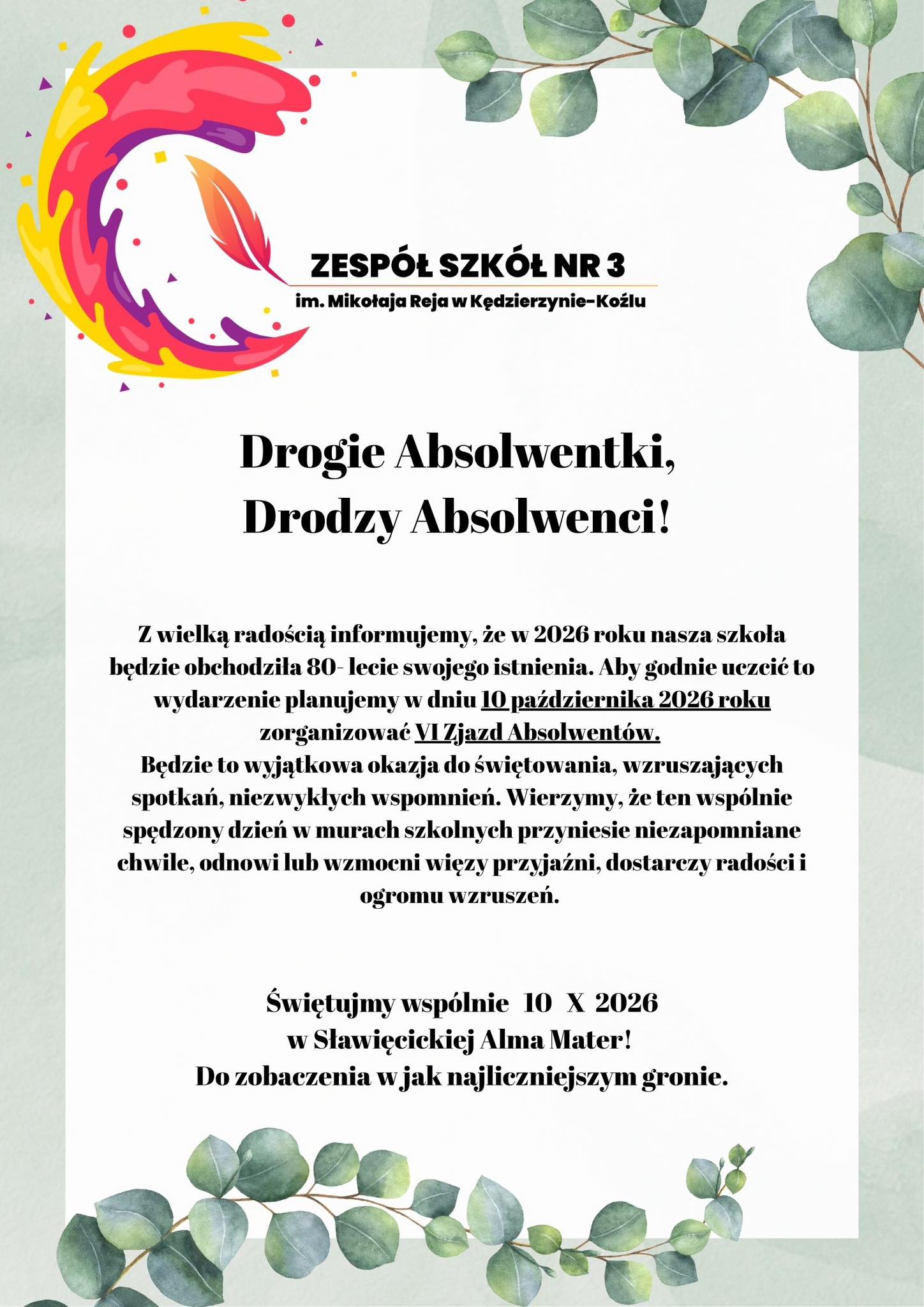 - Świętujmy wspólnie – 10 października 2026 roku, w Sławięcickiej Alma Mater! Do zobaczenia w jak najliczniejszym gronie! - zaprasza Zespół Szkół nr 3 w Kędzierzynie-Koźlu.