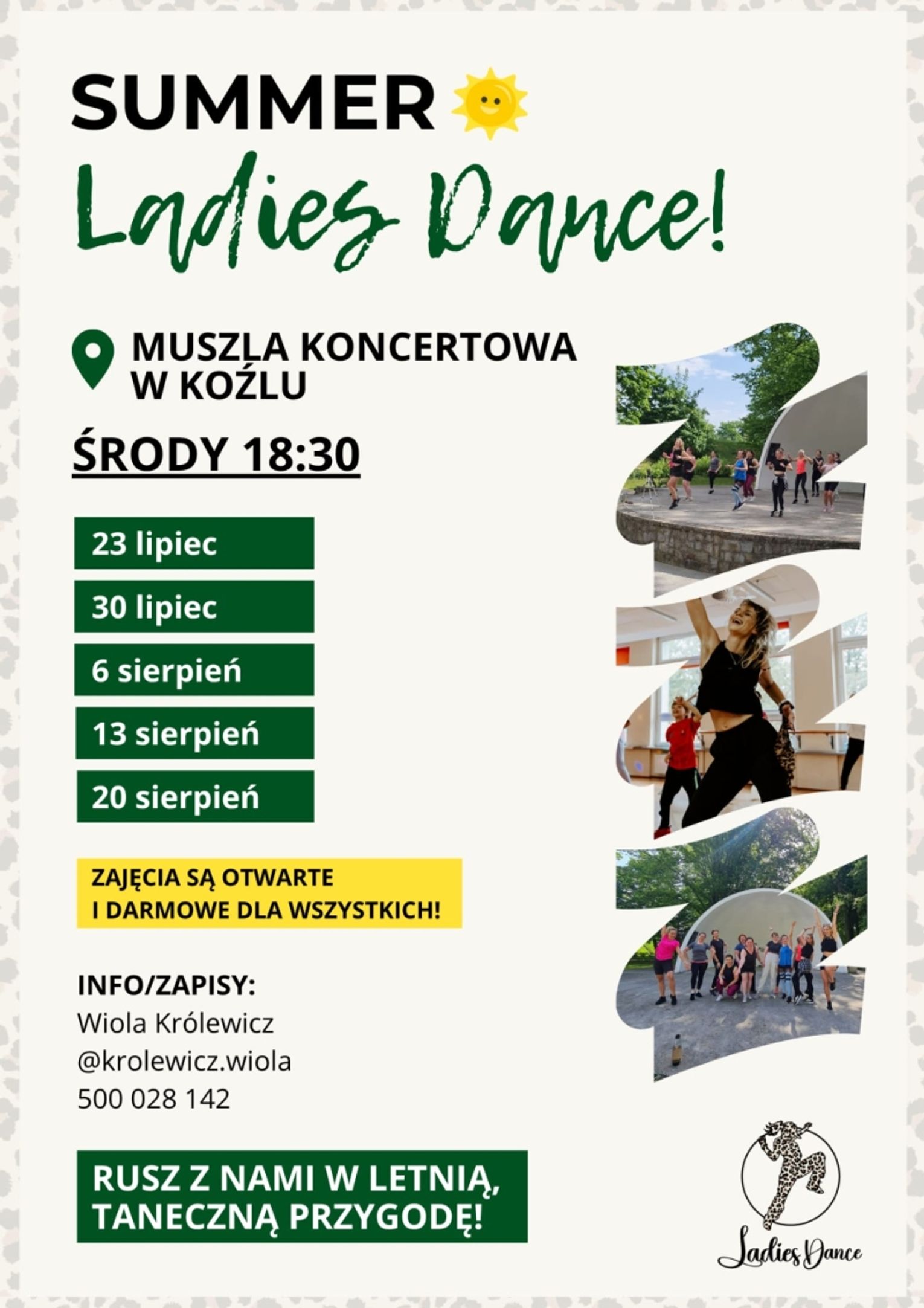 Już w najbliższą środę (6 sierpnia) - i kolejne - o godz. 18:30 muszla koncertowa w Koźlu zamieni się w najgorętszy parkiet w powiecie. Salsa, bachata, zumba - a przede wszystkim fantastyczne kobiety, które dają się porwać rytmowi i tworzą niepowtarzalną atmosferę wspólnej zabawy i luzu. Zajęcia prowadzi Wiola Królewicz - instruktorka, która nie tylko pokazuje kroki, ale zaraża energią, uśmiechem i radością życia.