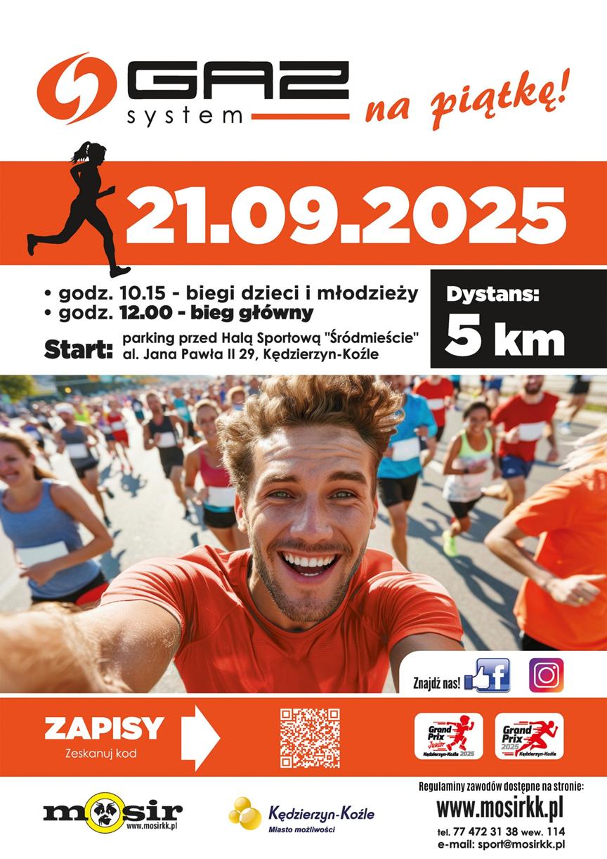 W tym roku odbędzie się jedenasta edycja popularnej imprezy biegowej, którą tym razem zaplanowano na 21 września. Miejski Ośrodek Sportu i Rekreacji oraz Operator Gazociągów Przemysłowych Gaz-System SA zapraszają do udziału w biegu głównym na dystansie 5 km oraz w biegach dla dzieci i młodzieży. Zapisy potrwają do 15 września, jednak w obu kategoriach limit wynosi po 300 osób, więc kto pierwszy ten lepszy. Start i meta tradycyjnie na parkingu przed halą sportową „Śródmieście” przy al. Jana Pawła II. Wydarzenie zalicza się do Biegowego Grand Prix Kędzierzyna-Koźla.