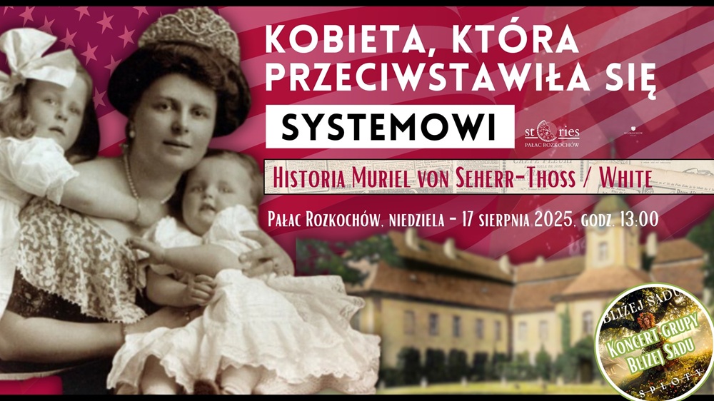 W niedzielę, 17 sierpnia, w Pałacu Rozkochów, odbędzie się spotkanie z udziałem prawnuka Hermanna i Muriel – Paula Churcha, obywatela Stanów Zjednoczonych. Wraz z nim do Polski przyjedzie Richard Jay Hutto autor książki poświęconej Muriel „The Countess and the Nazis. An American Family’s Private War” (pol. Hrabina i naziści. Prywatna wojna amerykańskiej rodziny). Podczas wydarzenia posadzone zostaną róże Muriel, Hutto przedstawi prelekcję o Muriel, a grupa Bliżej Sadu zagra koncert. Będzie okazja do rozmowy z Amerykanami i miłośnikami lokalnej historii. Początek spotkania „Kobieta, która przeciwstawiła się systemowi. Historia Muriel von Seherr-Thoss / White” – godz. 13.00. W przypadku niesprzyjających warunków pogodowych, wydarzenie odbędzie się w sali koncertowej.