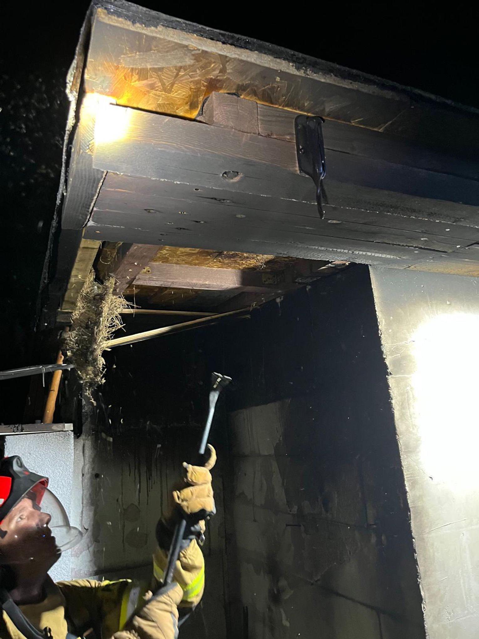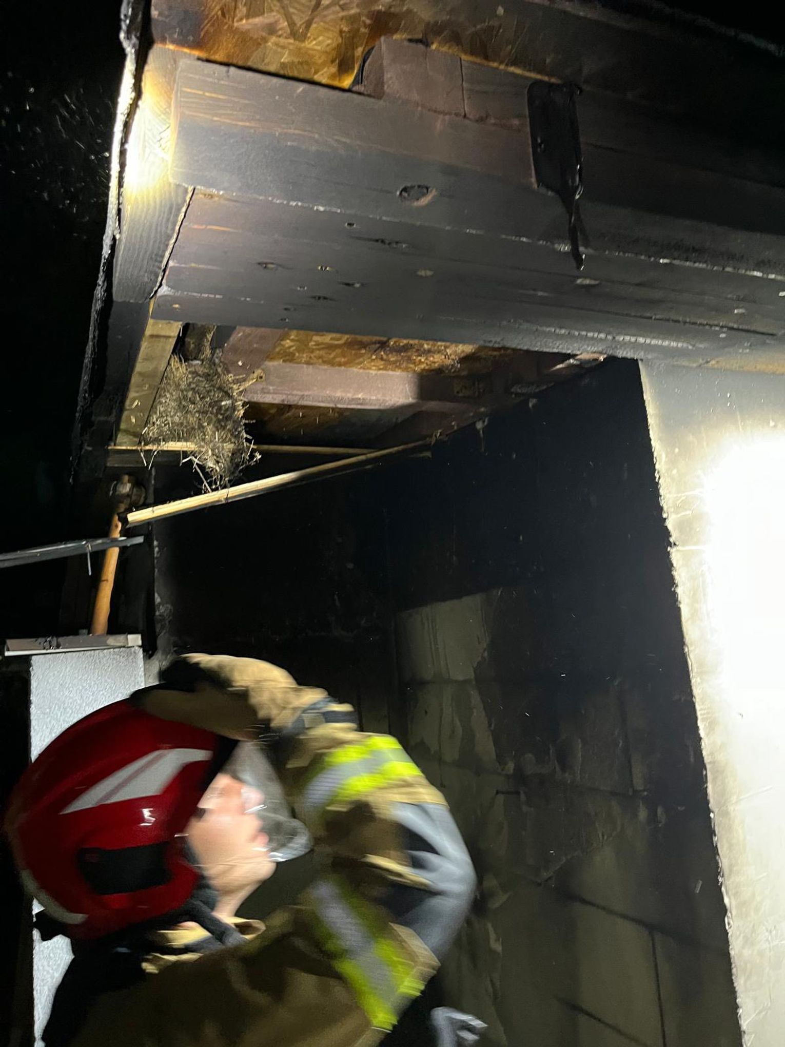 Na miejscu strażacy stwierdzili częściowo nadpalone poszycie dachu. Działania polegały na rozebraniu nadpalonych elementów konstrukcyjnych oraz schładzaniu elewacji, aby zapobiec dalszemu rozprzestrzenianiu się ognia. Dzięki szybkiej interwencji sytuację opanowano.