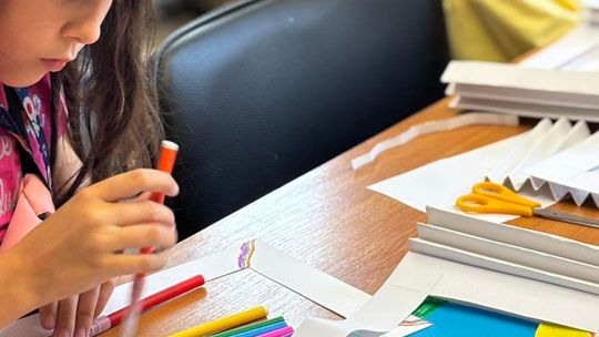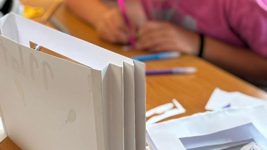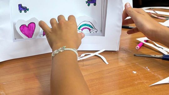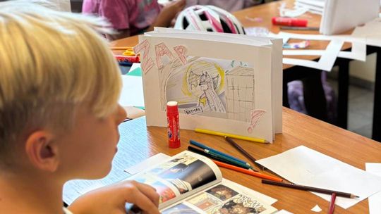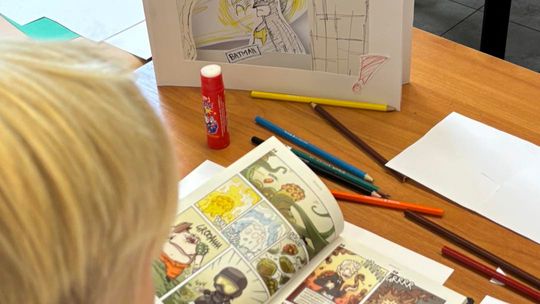 Uczestnicy zajęć edukacyjno-literackich pod tytułem „Opowieści małe i duże” odkrywali, czym jest książka tunelowa. To niezwykła forma plastyczna przypominająca teatrzyk w książce. Kształtem przypomina harmonijkę z wyciętymi otworami, które ustawione jedno za drugim tworzą tunel pełen obrazów.