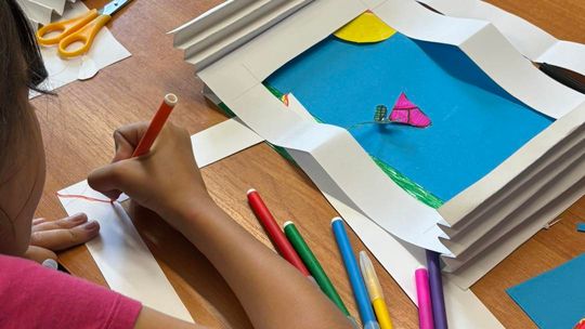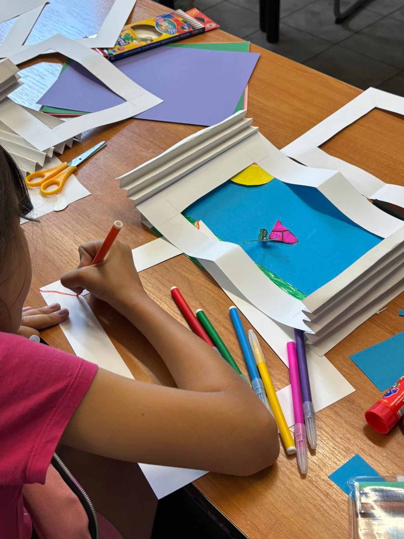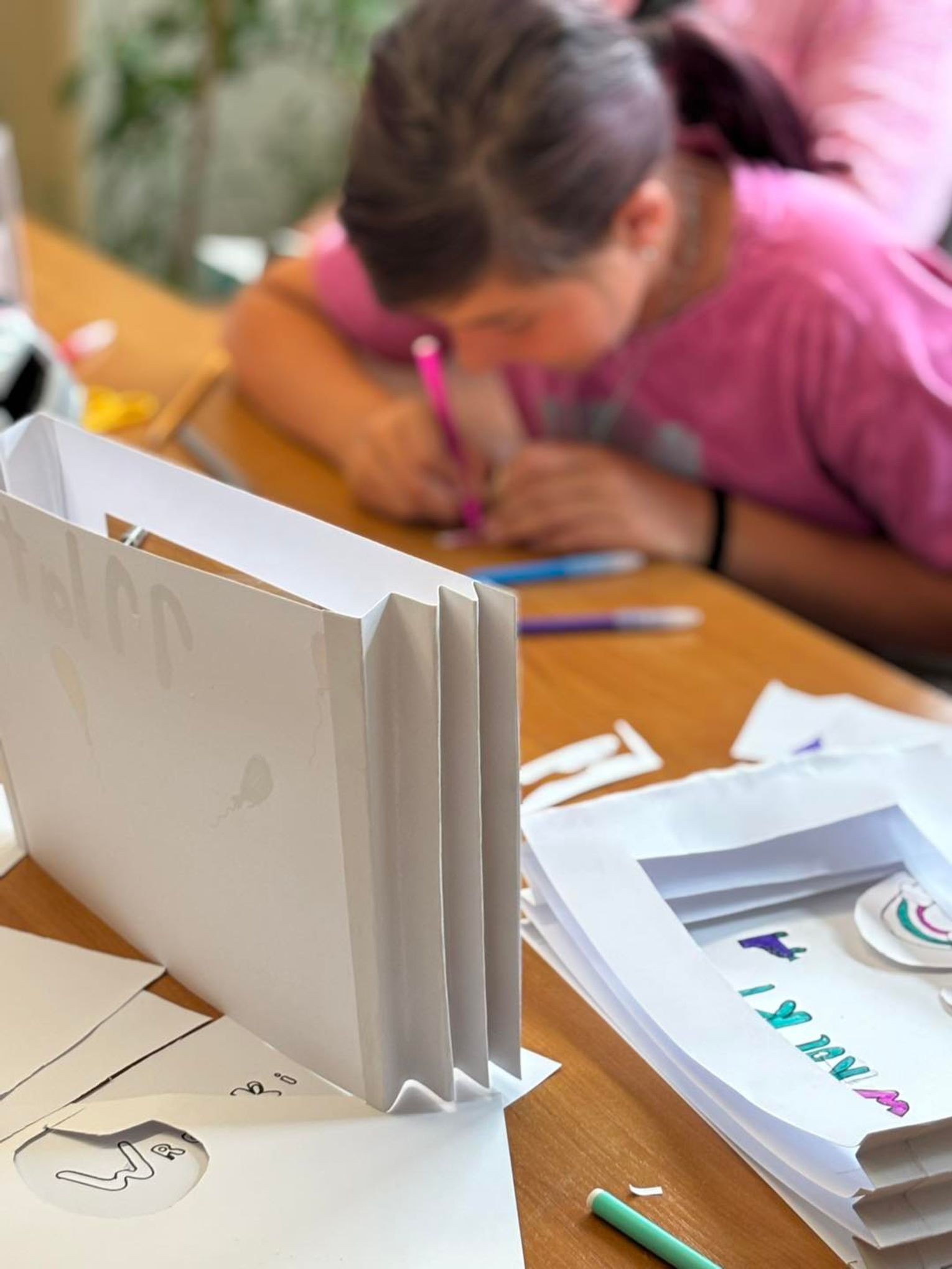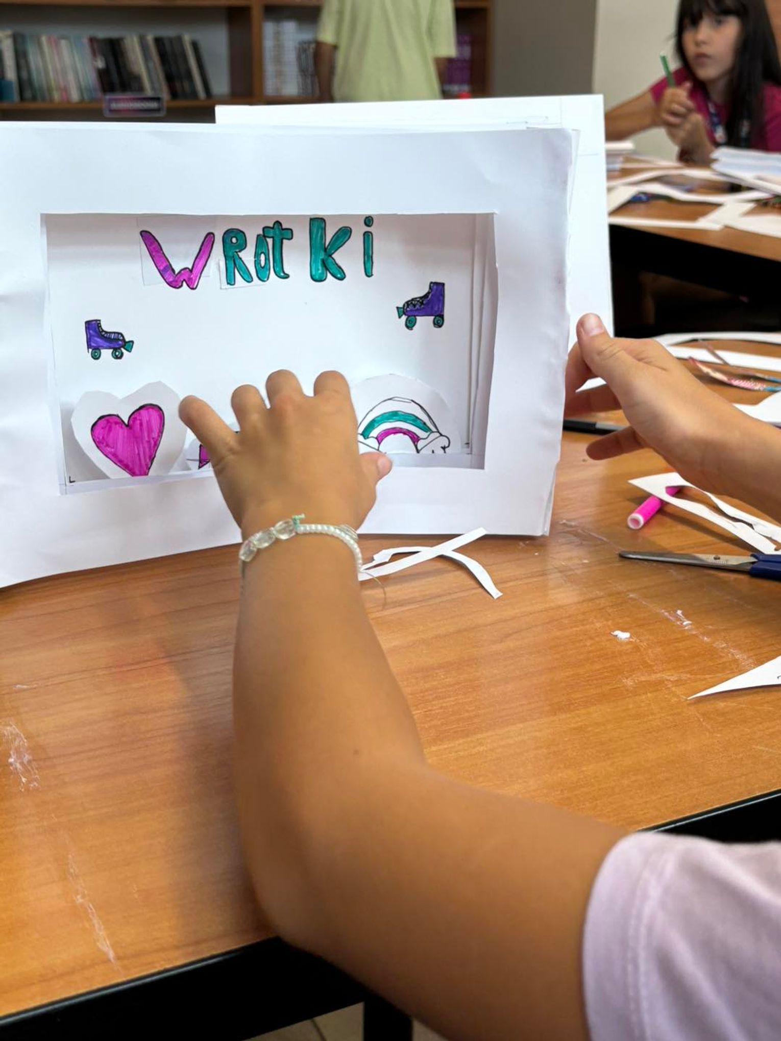Uczestnicy warsztatów tworzyli własne książki tunelowe, ilustrowali swoje historie, uczyli się, jak łączyć słowo z obrazem w wyjątkowy, magiczny sposób.