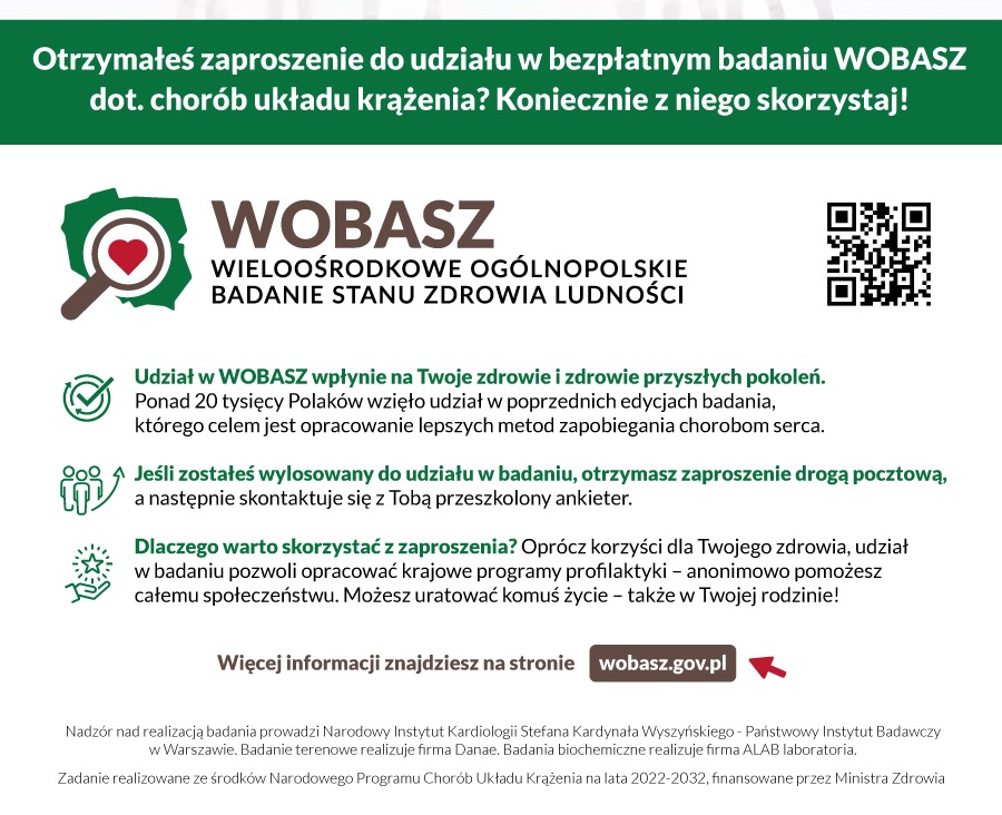 To część Narodowego Programu Chorób Układu Krążenia, realizowanego przez Instytut Kardiologii w Warszawie wraz z Ministerstwem Zdrowia i NFZ. Udział w badaniu jest dobrowolny, bezpłatny i bezpieczny.