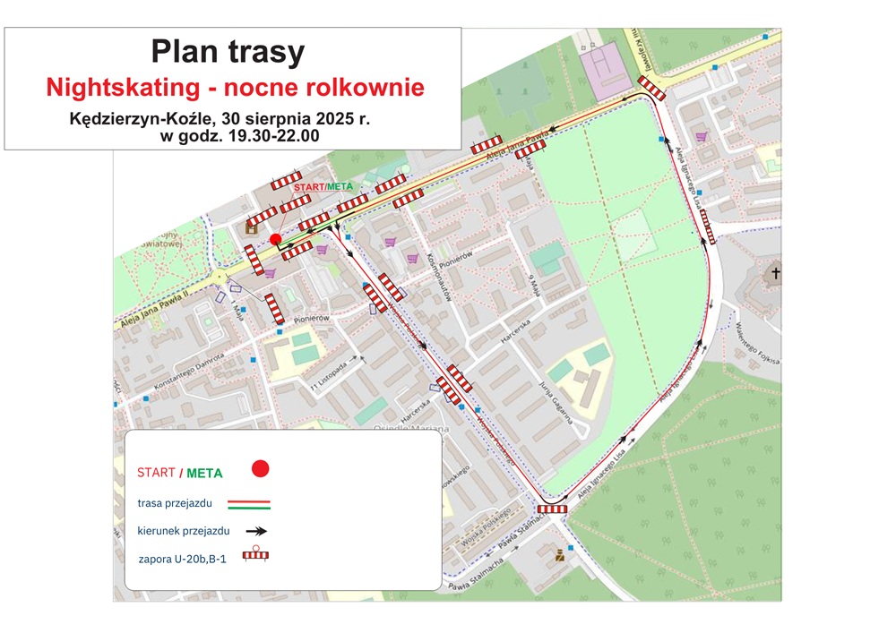 Nocny przejazd na rolkach i wrotkach (rowery, deskorolki czy hulajnogi są zabronione) ulicami Kędzierzyna odbędzie się w sobotę, 30 sierpnia. O godz. 19 przed halą sportową „Śródmieście” przy al. Jana Pawła II rozpocznie się wielka rozgrzewka, a o oprawę muzyczną zadbają DJ Dejzzy i David Hay. Start nastąpi o godz. 20, a trasa będzie biegła ulicą Wojska Polskiego, aleją Ignacego Lisa oraz aleją Jana Pawła II. W wydarzeniu mogą uczestniczyć dzieci do 16. roku życia, ale tylko pod nadzorem dorosłego opiekuna i obowiązkowo w kaskach. Na czas przejazdu ulice zostaną zamknięte, co będzie wiązało się z objazdami i utrudnieniami w ruchu.