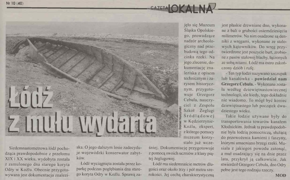 - Ten typ łodzi nazywano szczupak lub kanałówka - powiedział nam Grzegorz Cebula. - Wykonana została według dziewiętnastowiecznej technologii, ale kiedy, tego dokładnie nie wiadomo. To mógł być koniec dziewiętnastego lub początek dwudziestego wieku. Takie łodzie używane były do transportowania towarów kanałem Kłodnickim. Jednak ta prawdopodobnie była łodzią pomocniczą służącą do przewożenia kamieni i faszyny, którymi umacniano brzegi rzeki. Musiała z jakiegoś powodu zatonąć, a muł osadzający się na dnie przez lata, przykrył ją całkowicie. Jak stwierdził Grzegorz Cebula, dno Odry pełne jest tego rodzaju rzeczy.