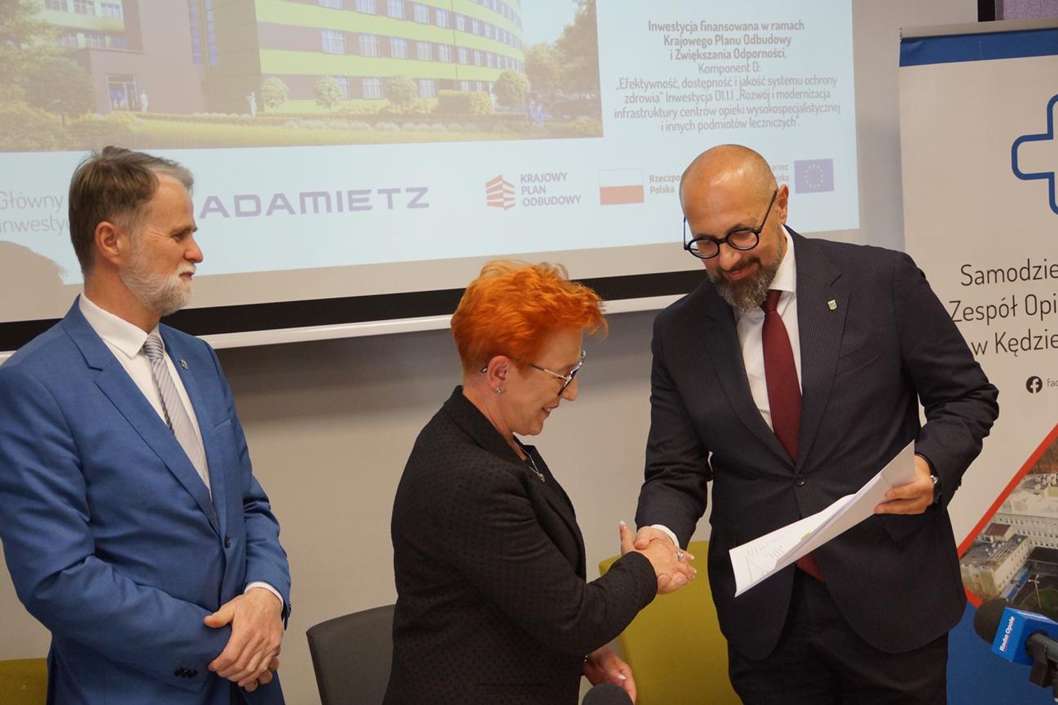 - Nasz powiat otrzymał z KPO ponad 65 milionów złotych – największe dofinansowanie w regionie w ramach tego programu. Środki przeznaczone są zarówno na roboty budowlane, jak i na zakup nowoczesnego sprzętu medycznego - informował starosta Artura Maruszczak, który wraz z wicestarostą Józefem Gismanem uczestniczył w podpisaniu umowy.
